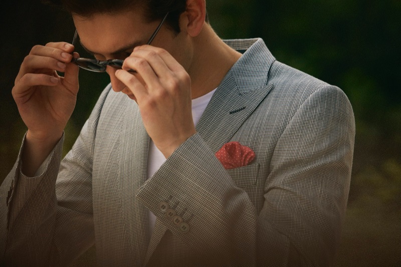 Donning a sharp suit, Oli Lacey appears in Gieves & Hawkes’ spring-summer 2019 campaign.