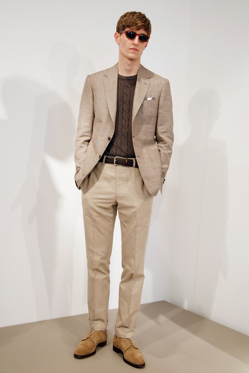Work & Play–Gieves & Hawkes explores many style motifs for their spring/summer 2014 outing, juxtaposing British tailoring with a wardrobe ready for a South African expedition. With the season in mind, suits in light fabrications are executed in pastel hues for a warm season attribute. Meanwhile, the brand approaches sportswear with a fantastic safari jacket setting the tone. Embracing shades of khaki and brown, shorts, cropped jackets and more come together with a relaxed reference of style.