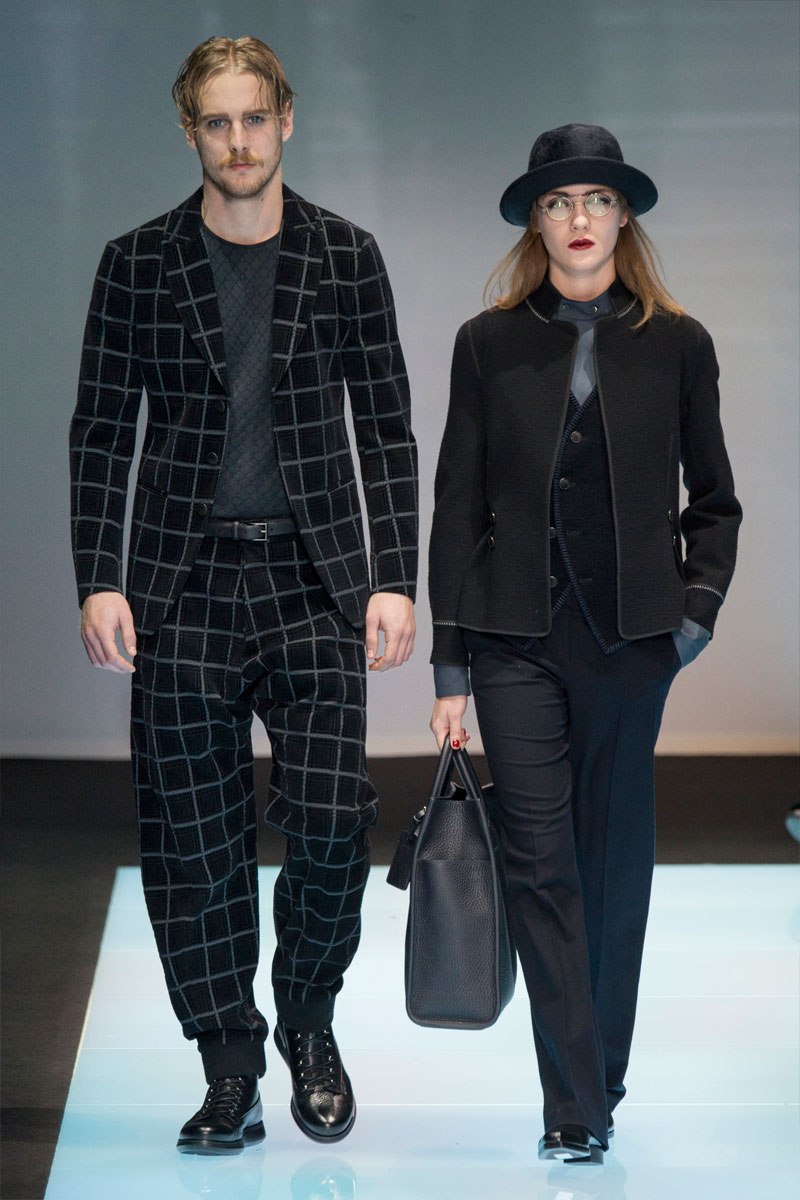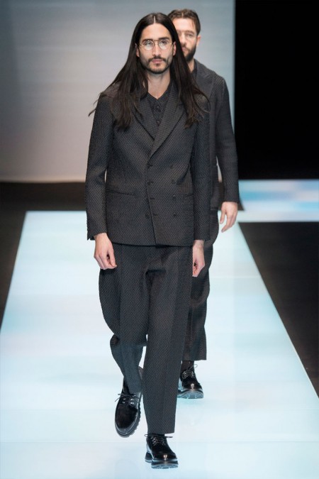 PinA Giorgio Armani cornerstone, relaxed tailored suiting was plentiful as part of the brand’s fall-winter 2016 collection.