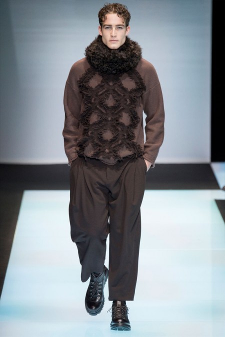 PinFaux fur trim adds a certain lavishness to choice outerwear pieces from Giorgio Armani’s fall-winter 2016 men’s collection.