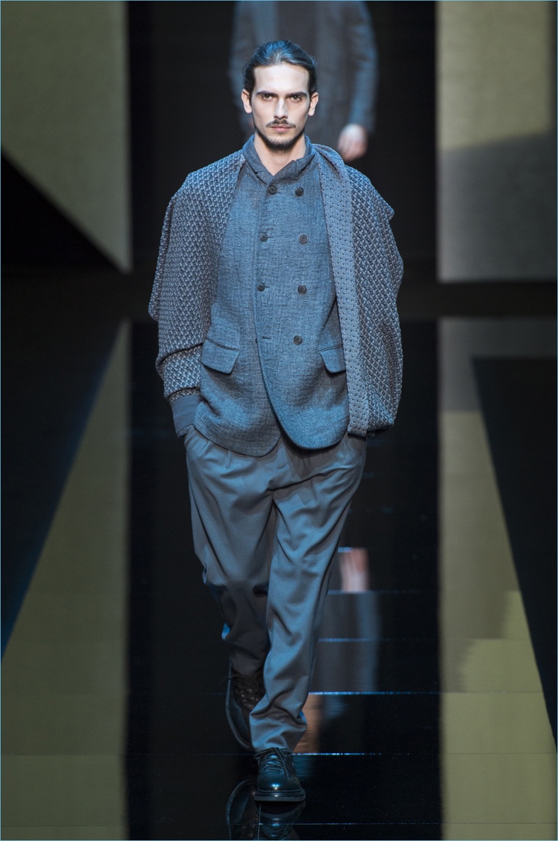 Giorgio Armani presents its texture rich fall-winter 2017 men's collection.Pin