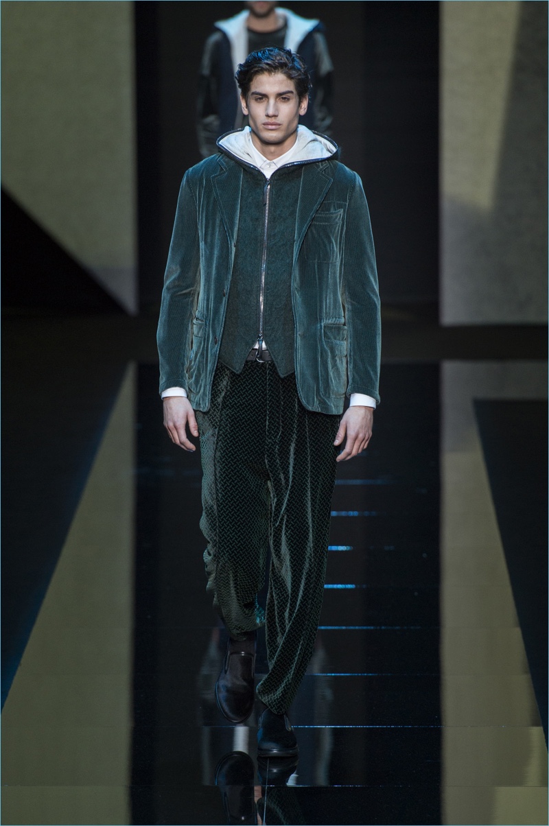 Luxurious materials elevate casual separates as part of Giorgio Armani's fall-winter 2017 collection.Pin