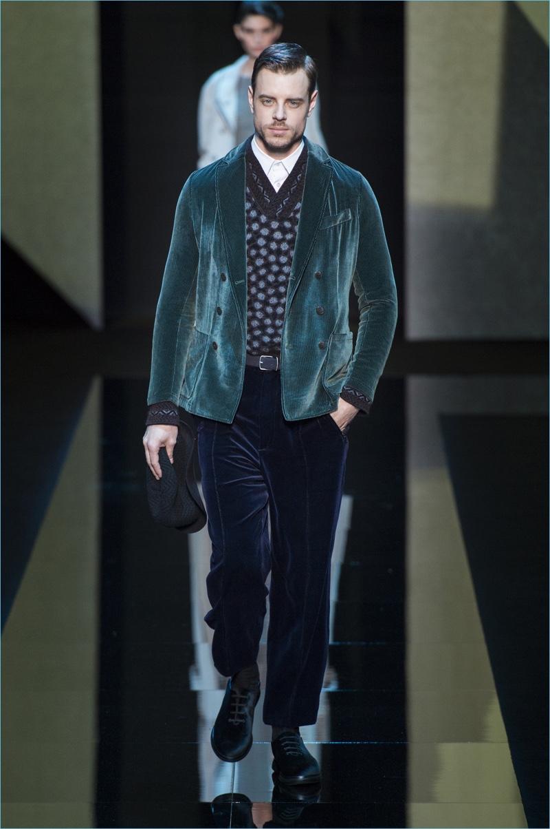 Mohair and velvet come together for a picture-perfect marriage from Giorgio Armani.Pin