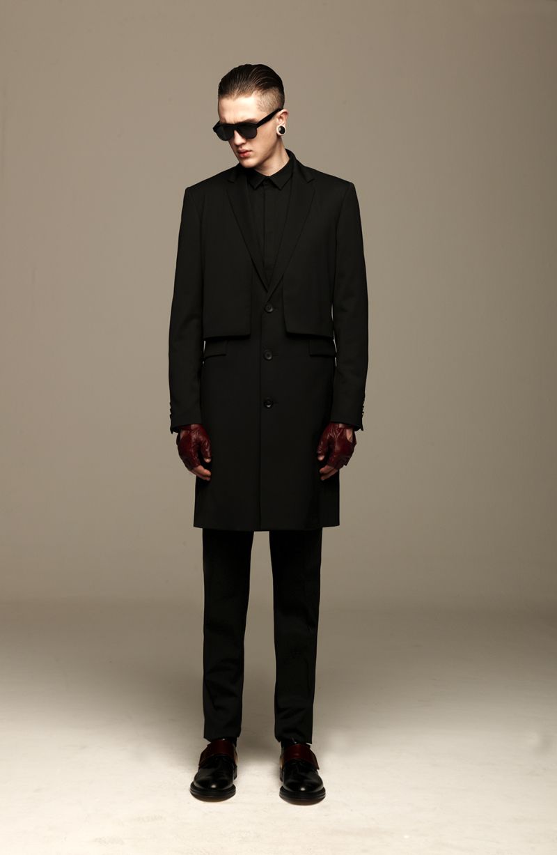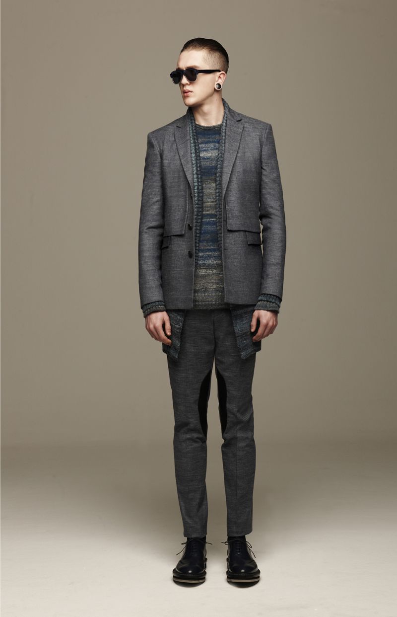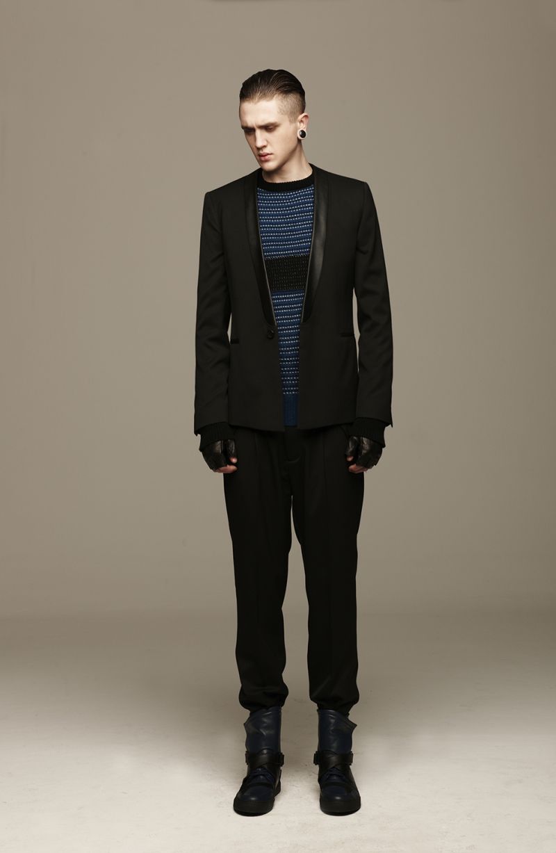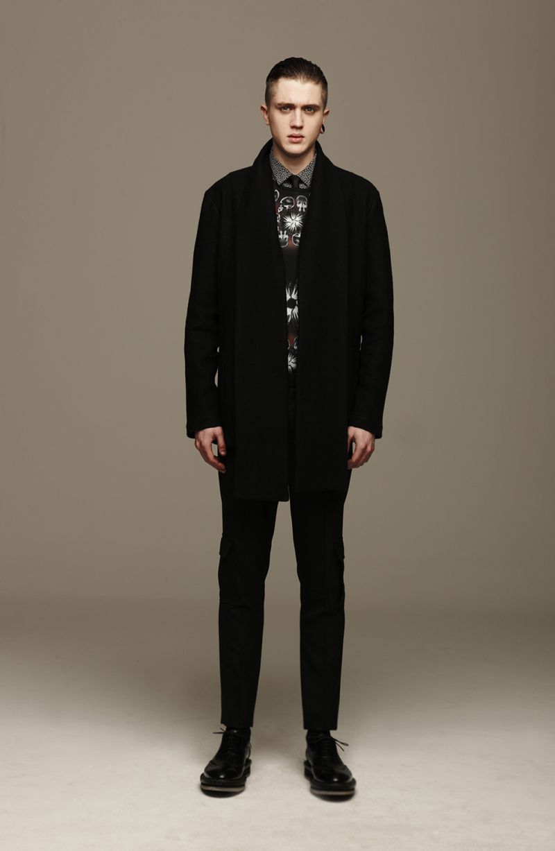Precision Cut–Model Josh Tuckley is enlisted for the fall/winter 2013 lookbook of Giuliano Fujiwara. Representing best the modern image of the brand, the latest collection is a continued representation of eastern and western influences converging. Embracing a sleek wardrobe with its fair share of fashion-forward elements and a touch of Italian tailoring, the new lineup maintains somber hues, reflecting its salt and pepper motif. Honing in on fit, drop shoulders complete silhouettes and the jacket remains carefree with a kimono-like finish. Meanwhile, small wide collars define shirts and trousers are cut slim or carrot-like for a smart contemporary offering.