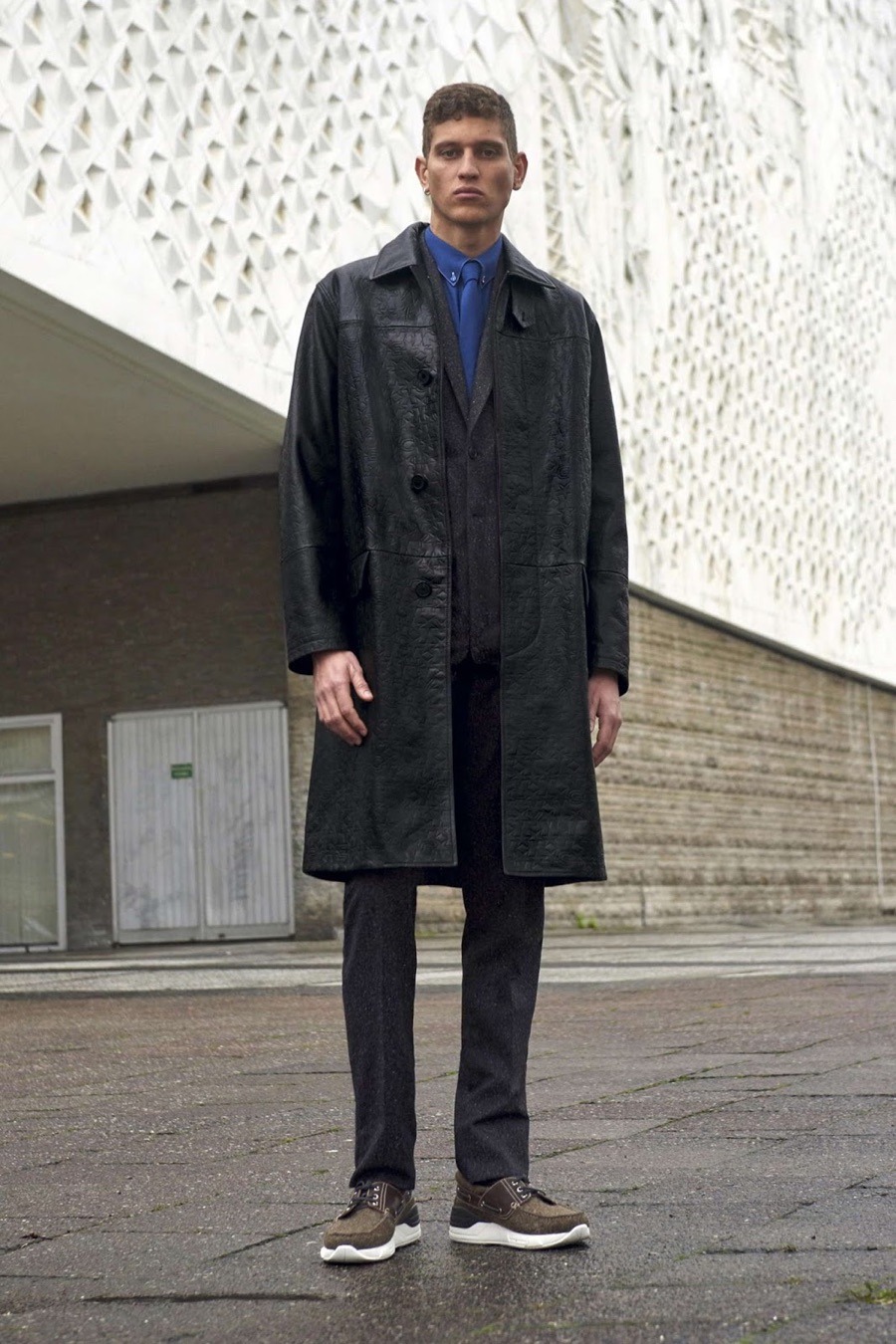 While Gucci may have turned to Berlin for the location of its most recent campaign, Givenchy is visiting the German city of art to showcase its pre-fall 2016 menswear collection. Givenchy shows an affection for Berlin with minimal lines and a sophisticated execution of patterns. The French fashion house’s hero pieces for the season are straight-forward with a focus on tailored coats and trim suiting. Embellished with studs and dressed in ornate patterns, Givenchy creative director Riccardo Tisci delivers a tasteful fall outing.
