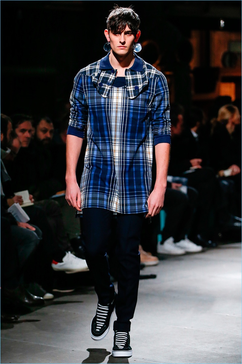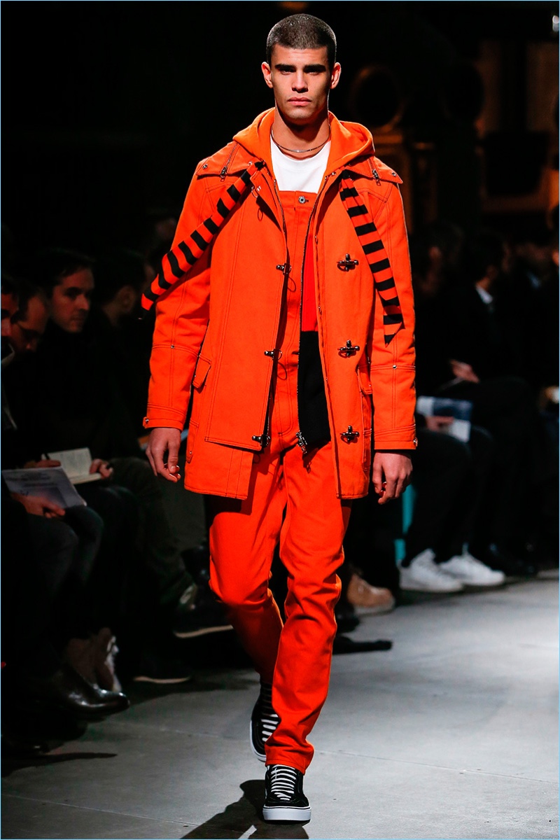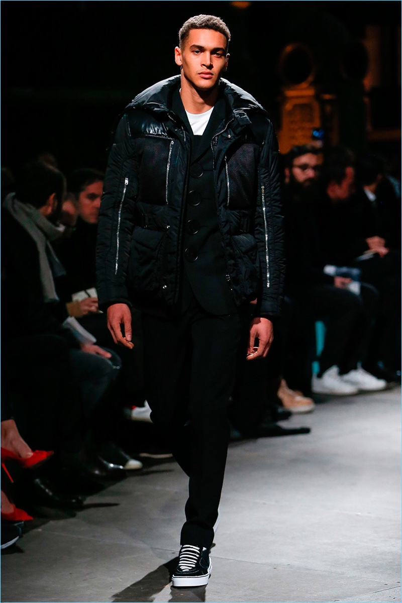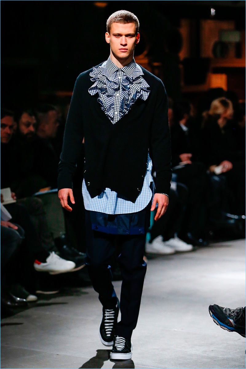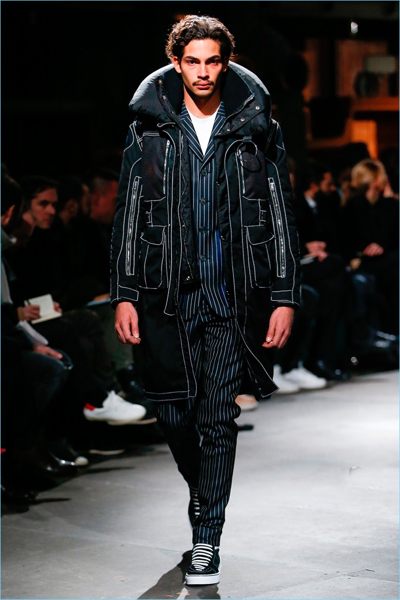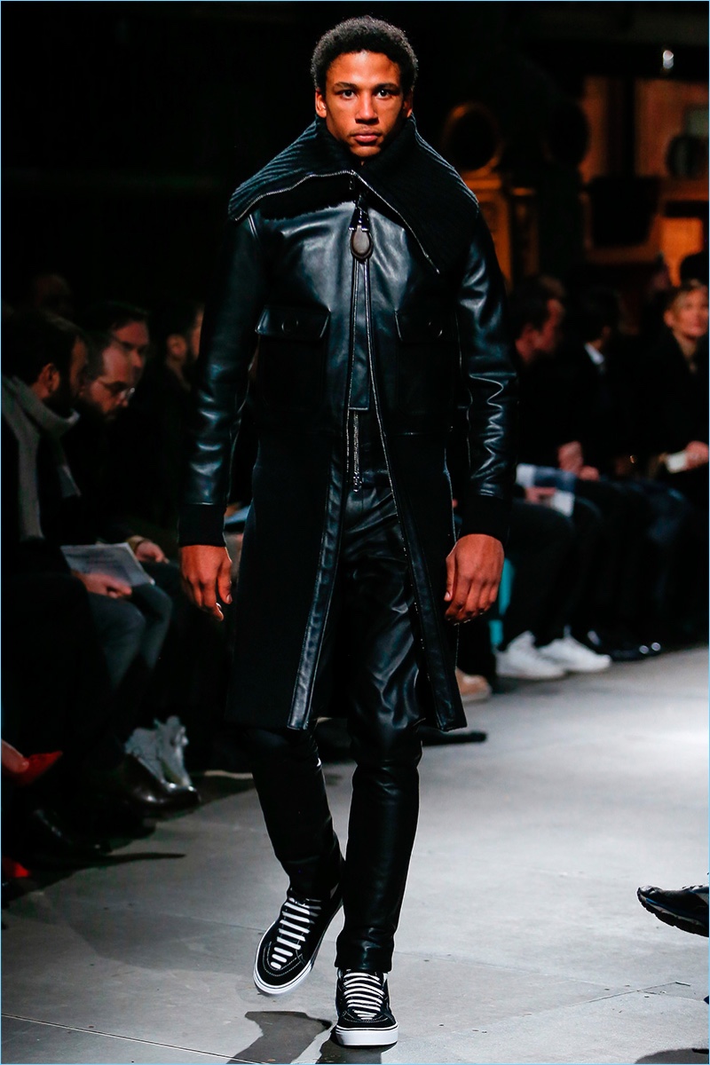 Givenchy creative director Riccardo Tisci looks to the American west as the inspiration of his fall-winter 2017 men’s collection. Referencing totem poles and stripes, Tisci turns out another graphic outing for the Parisian fashion house. Red, black, white, and blue contribute to the season’s color palette with a lineup of endless separates. A youthful flair flourishes with skate-inspired sneakers and oversized button details. Meanwhile, striped knitwear, tailored duffle coats, plaid shirting, and baseball tees round out the range.