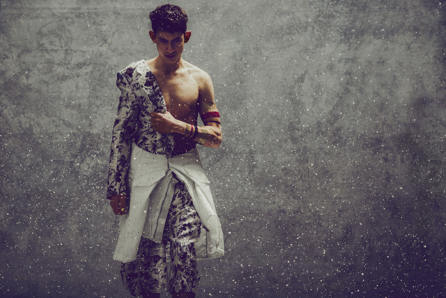 Glitter–Fusion up and comer Jamil Issa stars in a stunning editorial for British fashion magazine Wonderland. Photographed by Carlos Serrao, Jamil hits strong poses as glitter rains down on him. For the enchanting story, Jamil wears summer garments from Givenchy and Alexander McQueen.