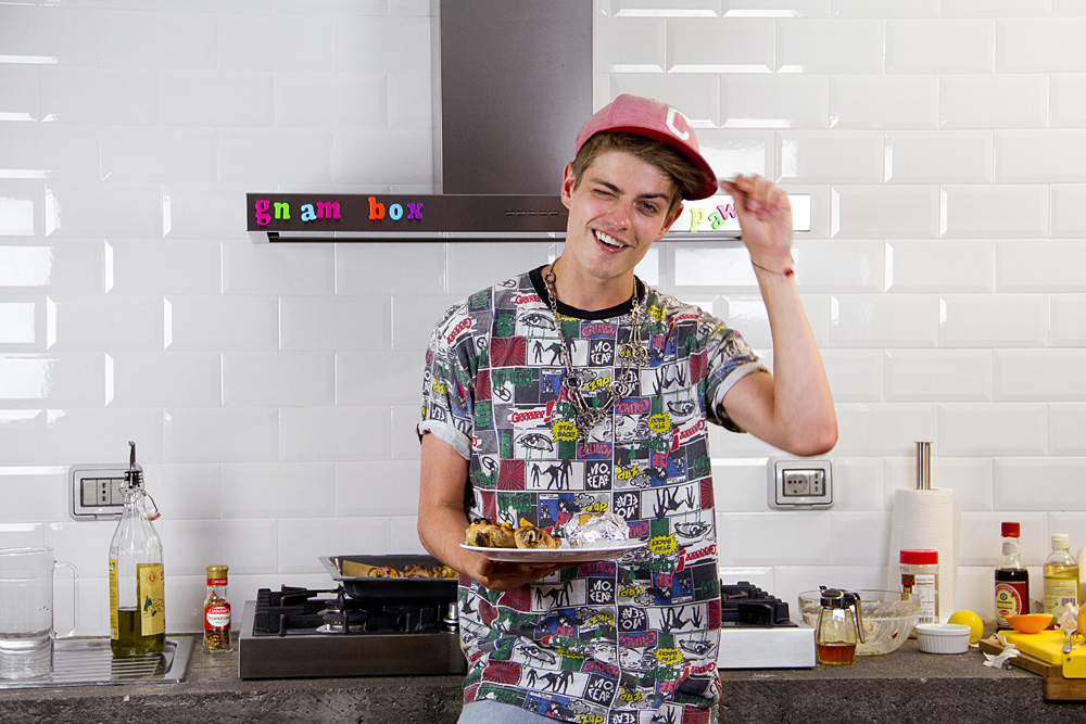 Passion for Food–Polish model Pawel Bednarek enters Gnam Box’s kitchen to cook a special and tasty recipe. Cooking baked jacket potatoes with mascarpone dip as a real pro, Pawel has fun unveiling this hidden side of his persona. Mastering the kitchen, Pawel proves to appreciate his own recipe, which is perfect, even for a fit model.