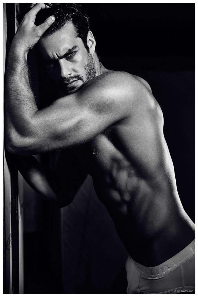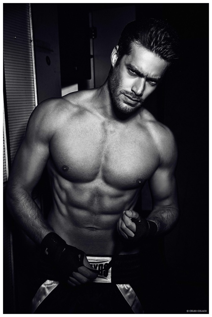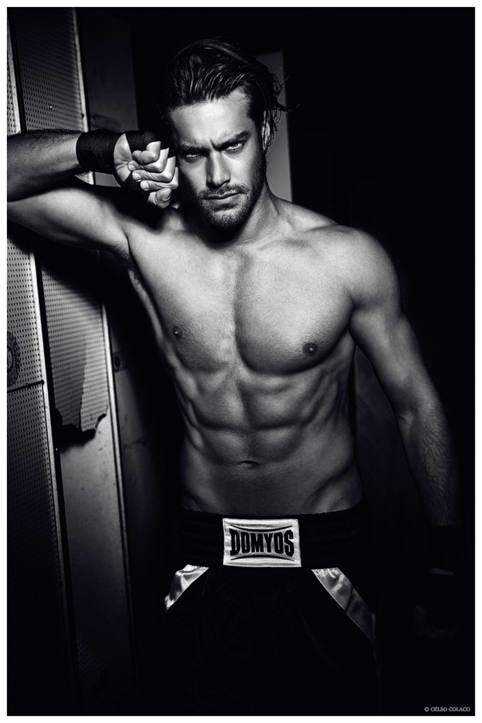 Sight Management model Goncalo Teixeira stars in a new shoot by fashion photographer Celso Colaco. Delivering a sporty edge with a boxing inspiration, Goncalo is the subject of dark images that play with shadows and high contrast for arresting results. Posing in his underwear and boxing shorts, Goncalo is in top form.