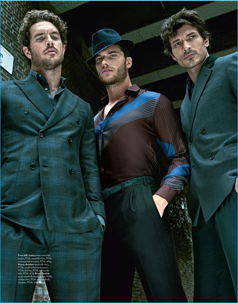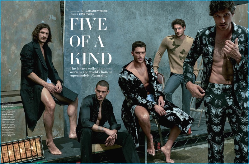 GQ Australia tackles the fall-winter 2016 collections with an editorial from its September 2016 issue. Entitled, Five of a Kind, the spread features top models Andres Velencoso, Aurelien Muller, Baptiste Giabiconi, Jarrod Scott, and Justice Joslin. A refreshing break from a current push for young, boyish models, the lot brings a certain charisma and charm to images by photographer Mariano Vivanco. Showcasing a juxtaposition of tailoring and bold prints, stylist Brad Homes pulls together Dior Homme, Dries Van Noten, Bally, Louis Vuitton, and countless other brands for the strong outing.