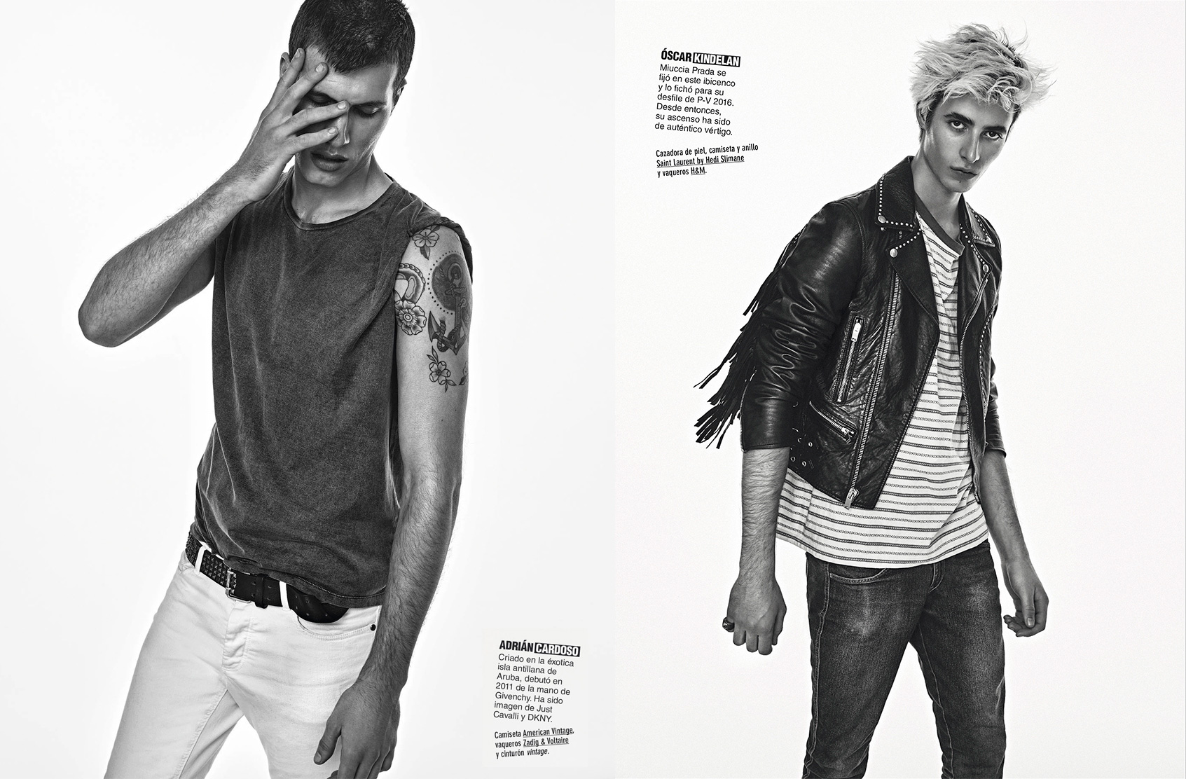 Adrian Cardoso and Oscar Kindelan embrace a rock aesthetic for the pages of GQ España.Pin