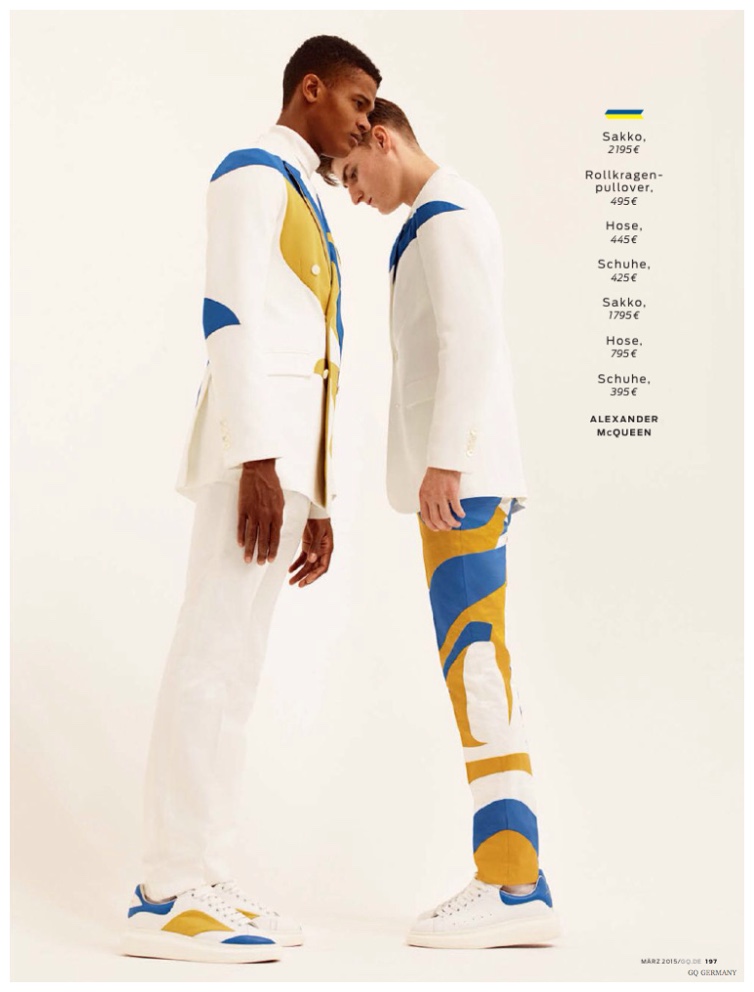 Models Alexander Beck, Dominik Bauer, Filip Hrivnak, Harry Goodwins and O’Shea Robertson grace the pages of GQ Germany’s March 2015 issue with a collections story lensed by fashion photographer Markus Pritzi. Honing in on the spring-summer 2015 menswear collections, stylist Tobias Frericks brings together a series of graphic looks, featuring the likes of Givenchy, Paul Smith and Louis Vuitton.