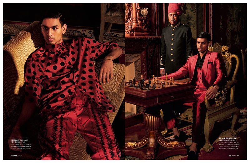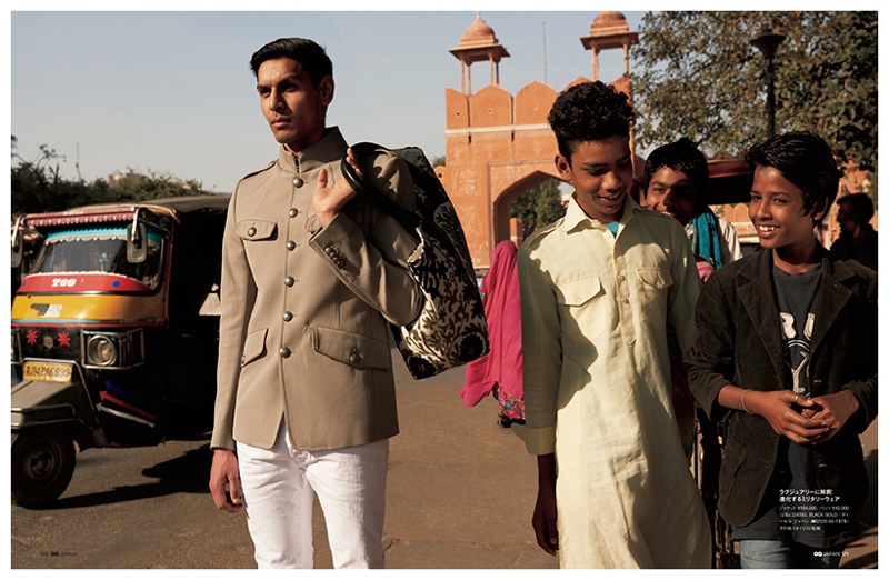 GQ Japan visits India for its latest issue, linking up with fashion photographer Adrian Mesko. Collaborating with stylist Jacky Tam, Mesko captures the spring-summer 2015 collections. Featuring designer looks pulled together under the direction of Grant Pearce, models Manu Bora and Sarvesh are photographed outdoors in standout ensembles from the likes of Louis Vuitton, Dolce & Gabbana, Berluti and Burberry Prorsum. / Grooming by Giorgios (Anima Talent).