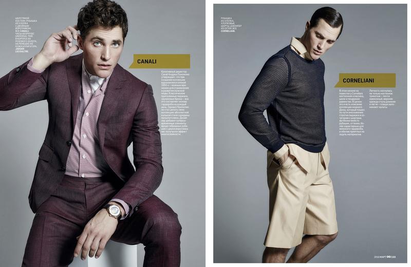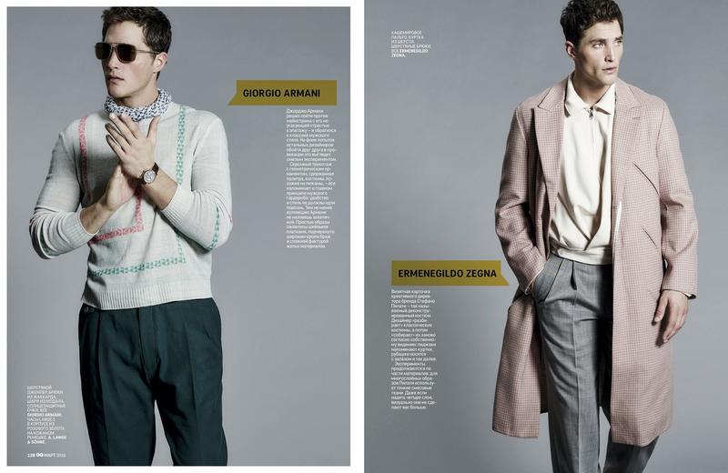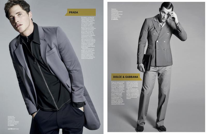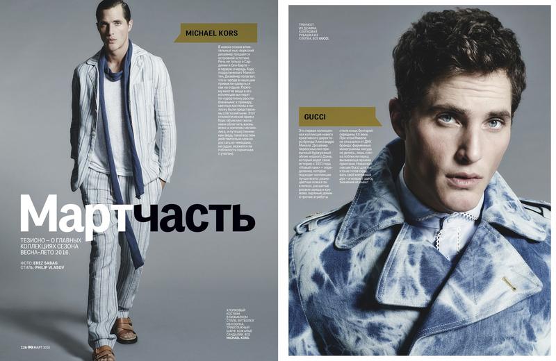 GQ Russia commissions photographer Erez Sabag and stylist Philip Vlasov for a fashion editorial featured in its March 2016 issue. Putting the spotlight on the spring-summer 2016 collections, British model Ollie Edwards is front and center for a studio shoot. Embracing soft tailoring and relaxed shapes, Ollie is a chic vision. Donning both suits and sportswear, Ollie dons standout ensembles from a parade of fashion brands that includes Michael Kors, Gucci and Giorgio Armani.