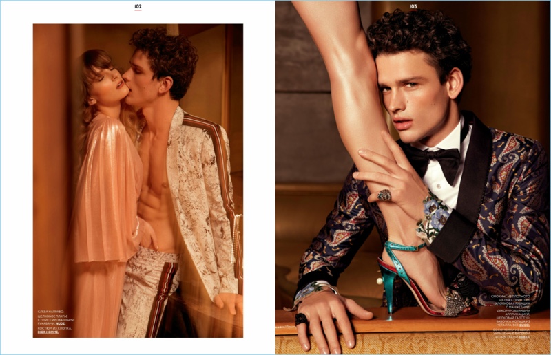 PinModels Grace Corton and Simon Nessman pose for the pages of GQ Style Russia. Simon wears a look by Dsquared2 and Gucci.