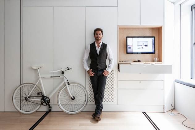 Conscious Design–For the latest Style & Substance feature by John Varvatos, entrepreneur Graham Hill spends a few moments with the brand in his NYC home, sharing his thoughts on design and environmentalism. His latest endeavor is called LifeEdited, a real estate startup company focused upon an efficient design process that is also socially conscious. Dressed in the classic vest and white shirt combo, Graham is shaking up the design industry while keeping his style crisp and clean.