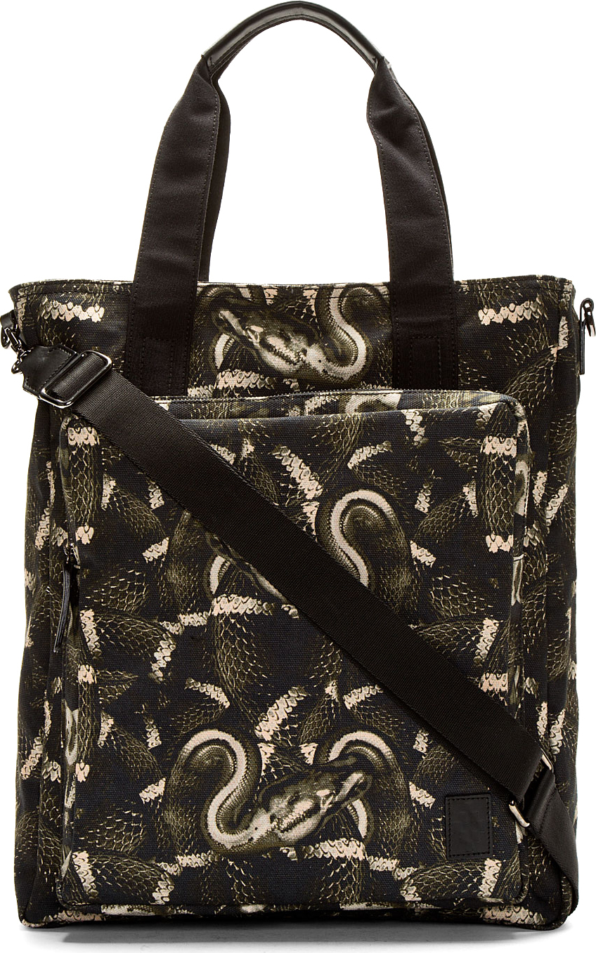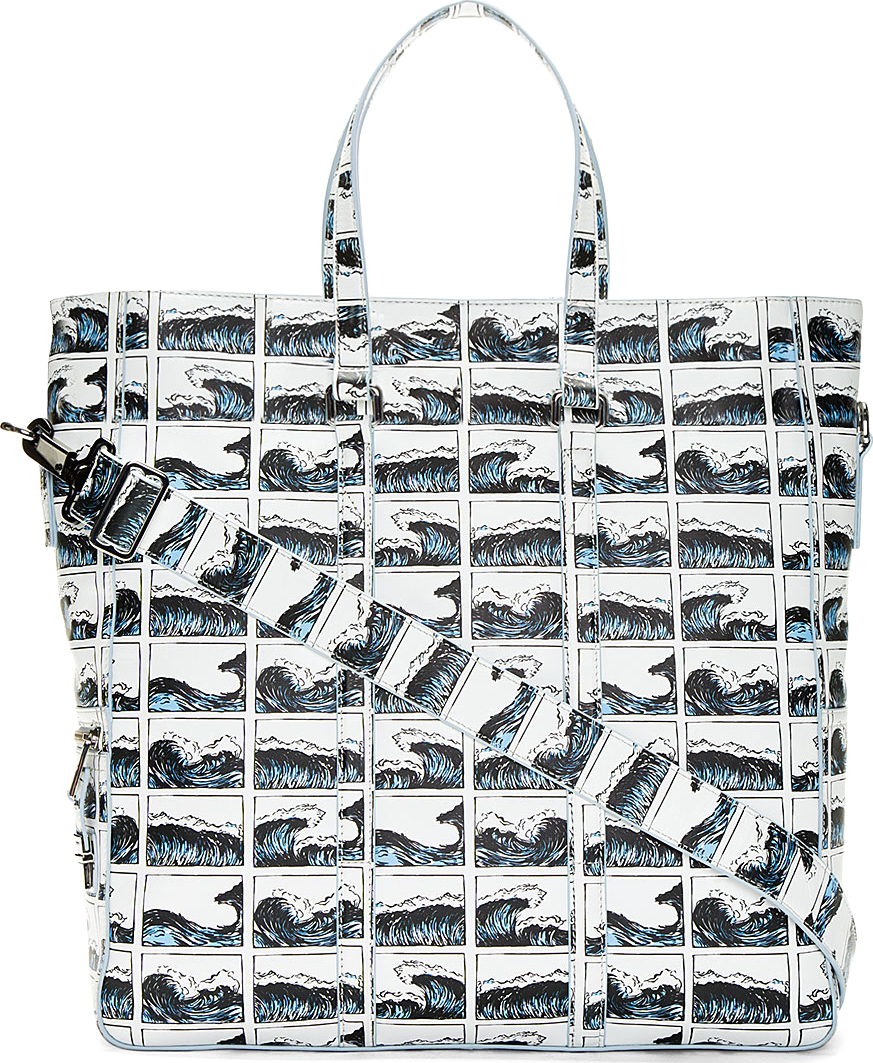 Graphic Men’s Bags–For the stylish man on the go, the choice to carry a bag and the designer that makes the cut contributes to the ultimate style statement. Long gone are the days of a selection that consists of all black and brown leather options. For summer, designers are adventurous as fun graphics dress backpacks, totes and more. From Alexander McQueen’s bold skulls and Kenzo’s cool waves to Saint Laurent’s exotic python print, men’s bags are anything but boring. Here, we round up some of our favorite bags this season, but don’t just take our word for it, shop more designer bags at SSENSE.com.