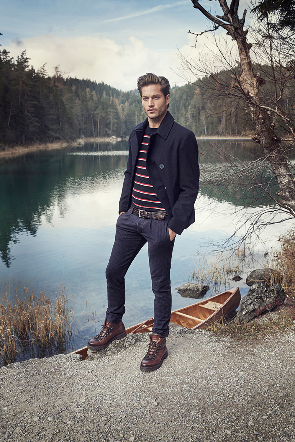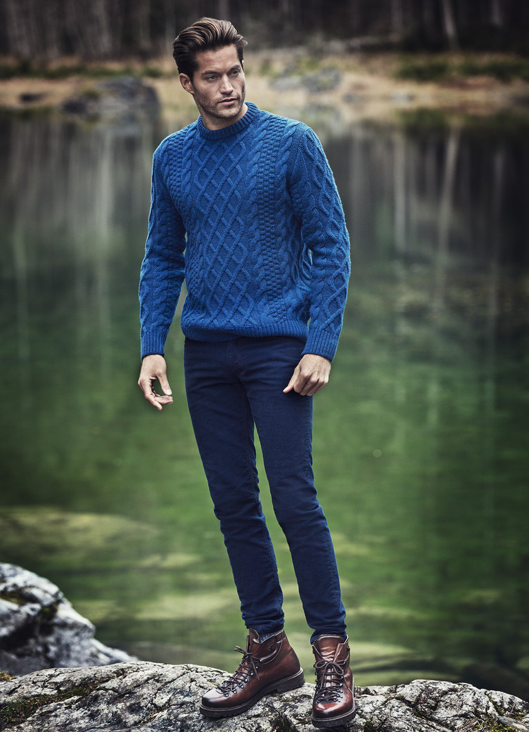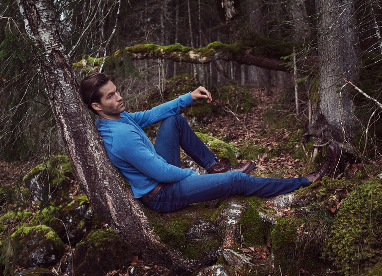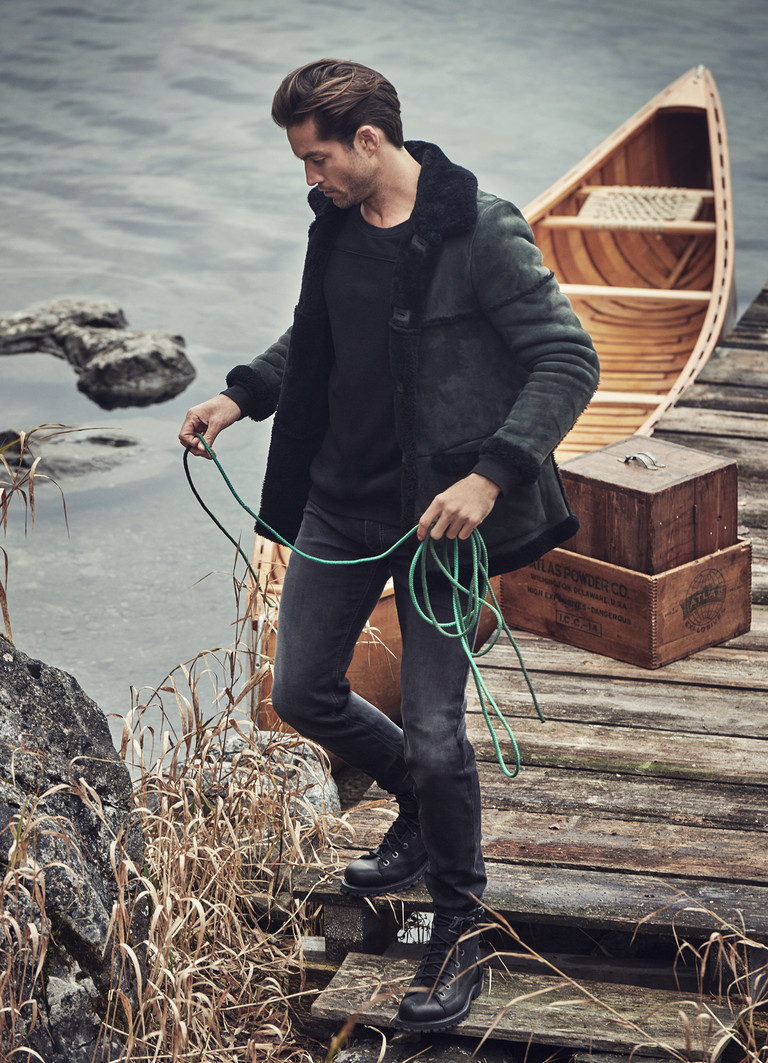 Model Greg Kheel embraces the great outdoors as he stars in the fall-winter 2015 lookbook of Alberto Pants. Rugged style is front and center for the outing. Greg models the brand’s signature denim jeans with casual essentials such as the oversized cardigan sweater, relaxed t-shirts, cable-knit sweaters and the shearling jacket.