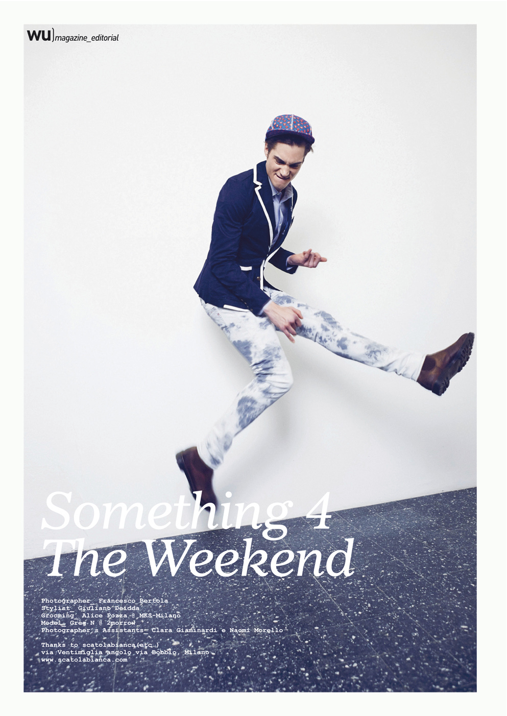 Casual Cool–Embracing fun prints and vibrant colors, model Greg Nawrat (2Morrow) prepares for the weekend in the latest editorial spread for WU magazine. Showing off his quirky personality before the lens of photographer Francesco Bertola, Greg is styled by Giuliano Deidda in a graphic and energetic wardrobe. / Grooming by Alice Pozzi.