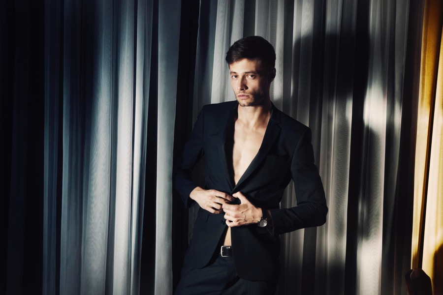 Panda model Grzegorz Ślesicki stars in a new photo series lensed by photographer Witold Lewis. Posing in a regal room, Grzegorz is captured in rich hues. Serving up quite the angles, Grzegorz is styled by Dominika Kroczak, wearing trim tailoring, a fur jacket and flashy gold lamé underwear.