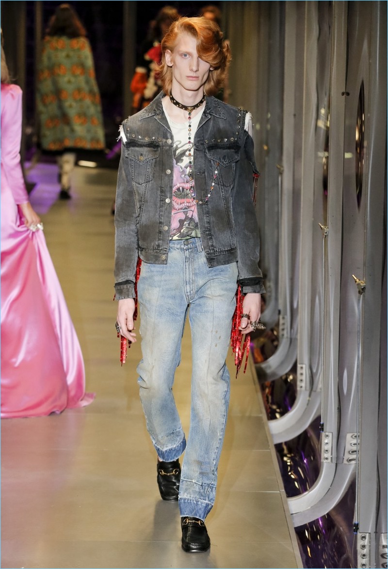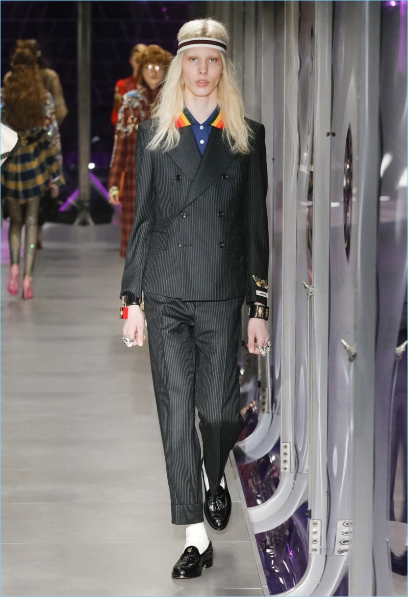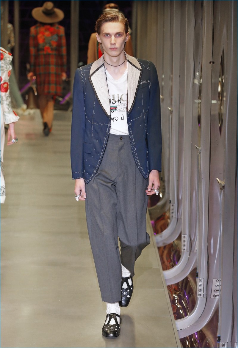 Gucci presents its fall-winter 2017 men's collection during Milan Fashion Week.Pin