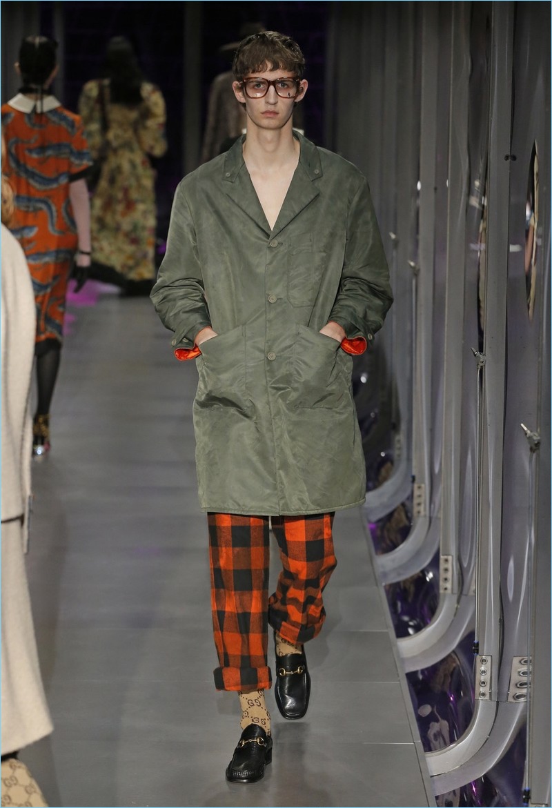 Outerwear is oversized and elongated for Gucci's fall-winter 2017 men's collection.Pin