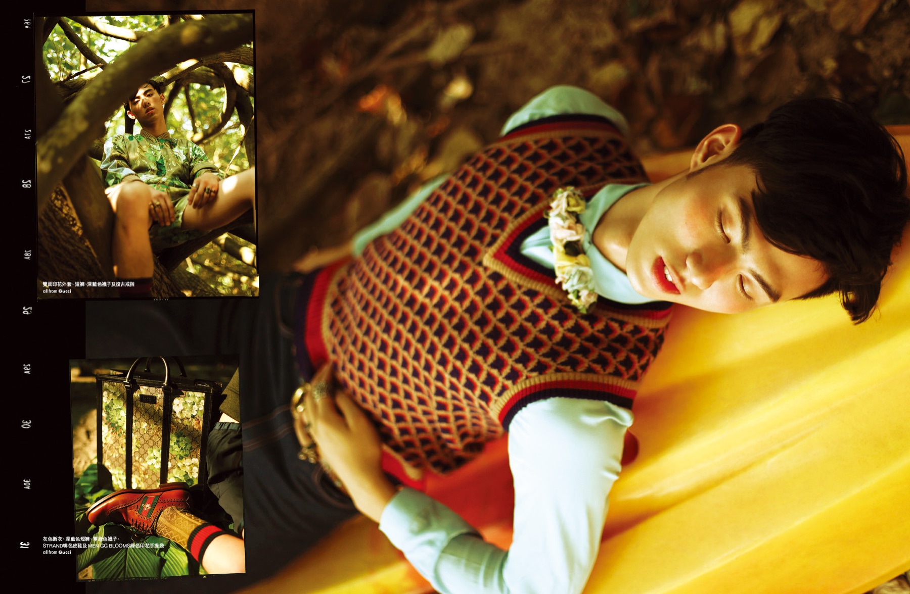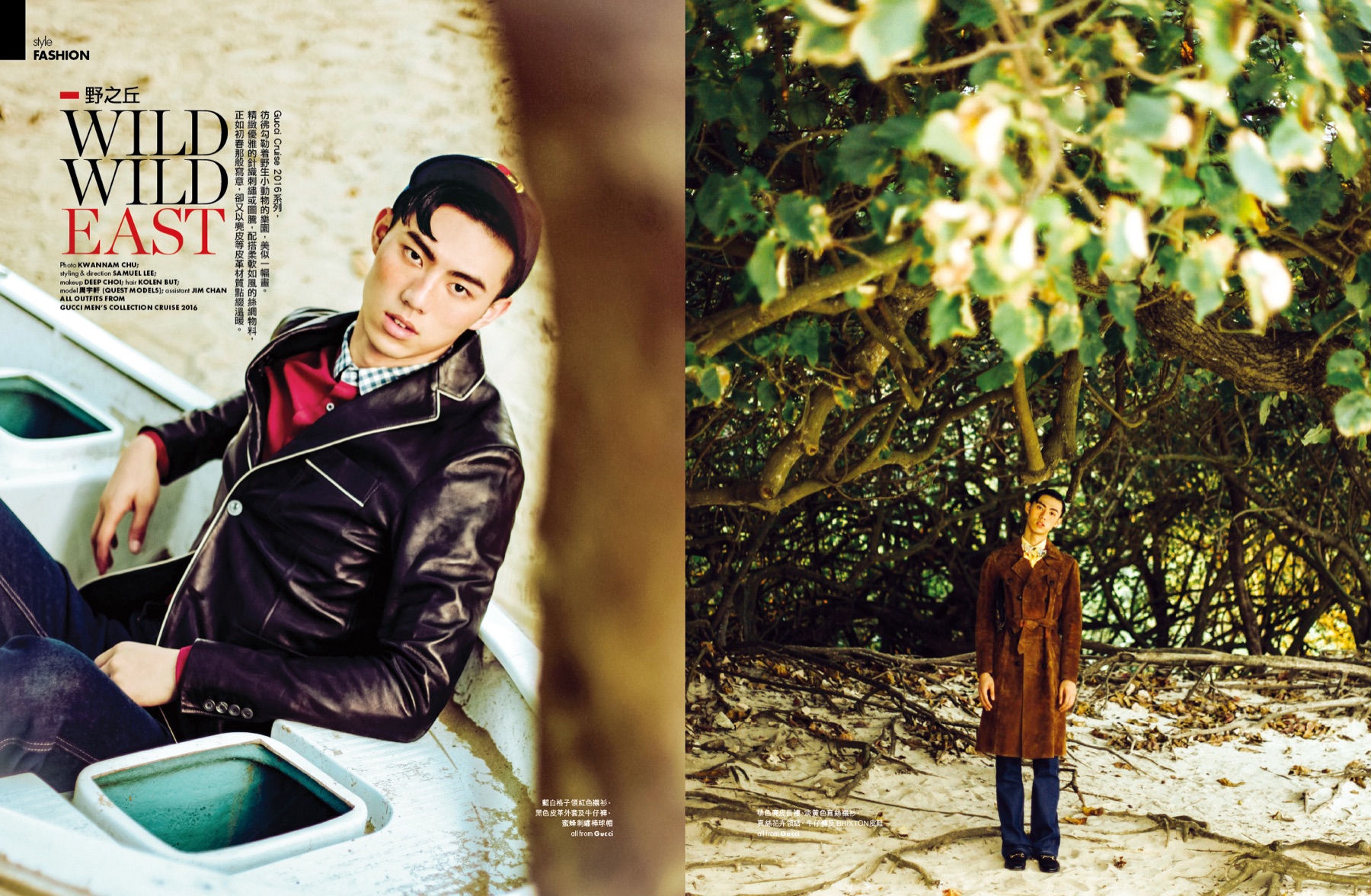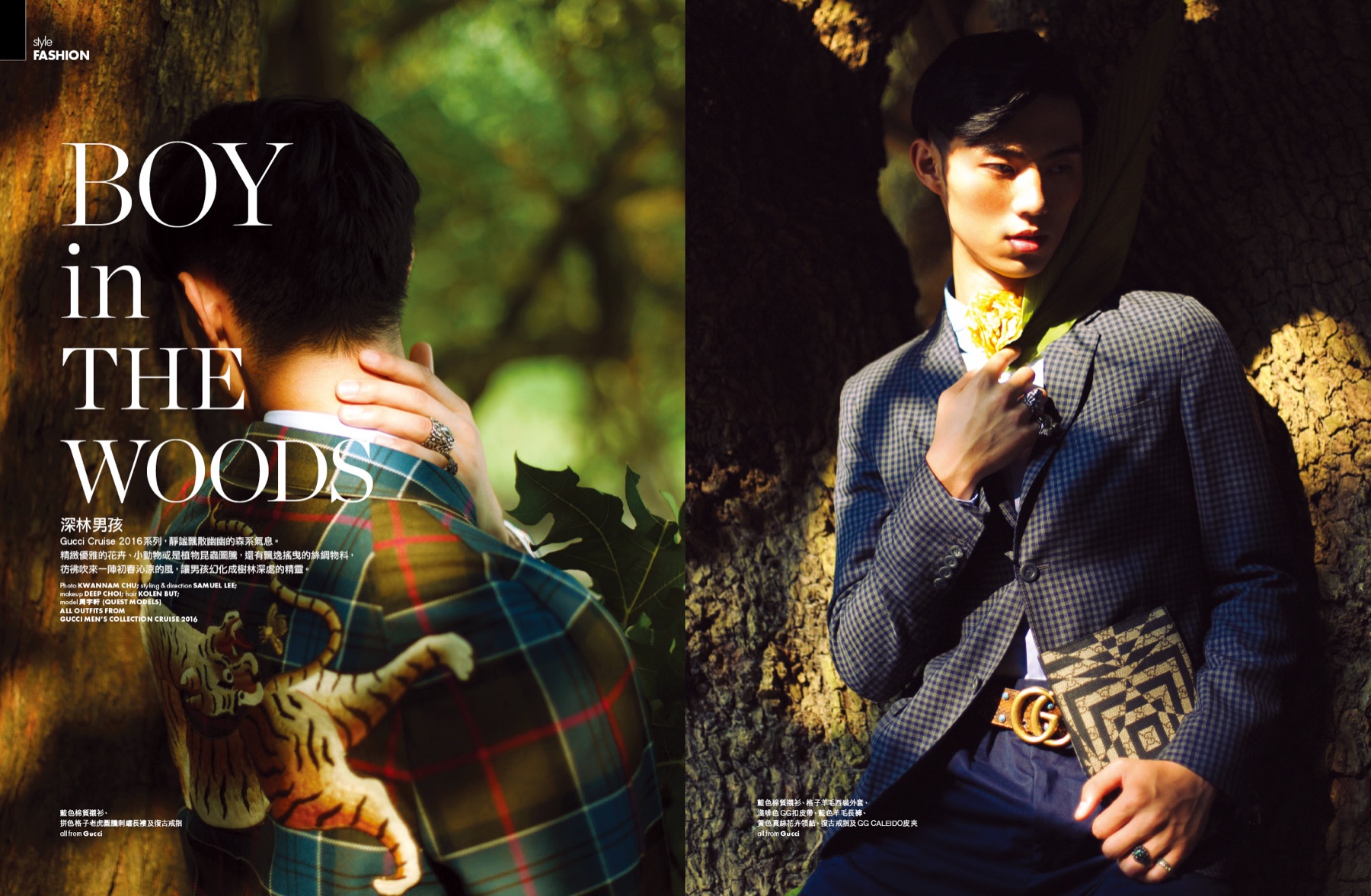 Elle Men Hong Kong highlights Gucci’s cruise 2016 collection with a new editorial featuring model Yu Xuan Zou. Venturing outdoors for an outing with a young, fresh attitude, Yu is photographed by Kwannam Chu. Wearing dandy knit sweaters, slim-fit dress shirts and must-have outerwear, Yu is styled by Samuel Lee. Among the ready to wear ensembles are statement pieces that add fun with an animal motif.