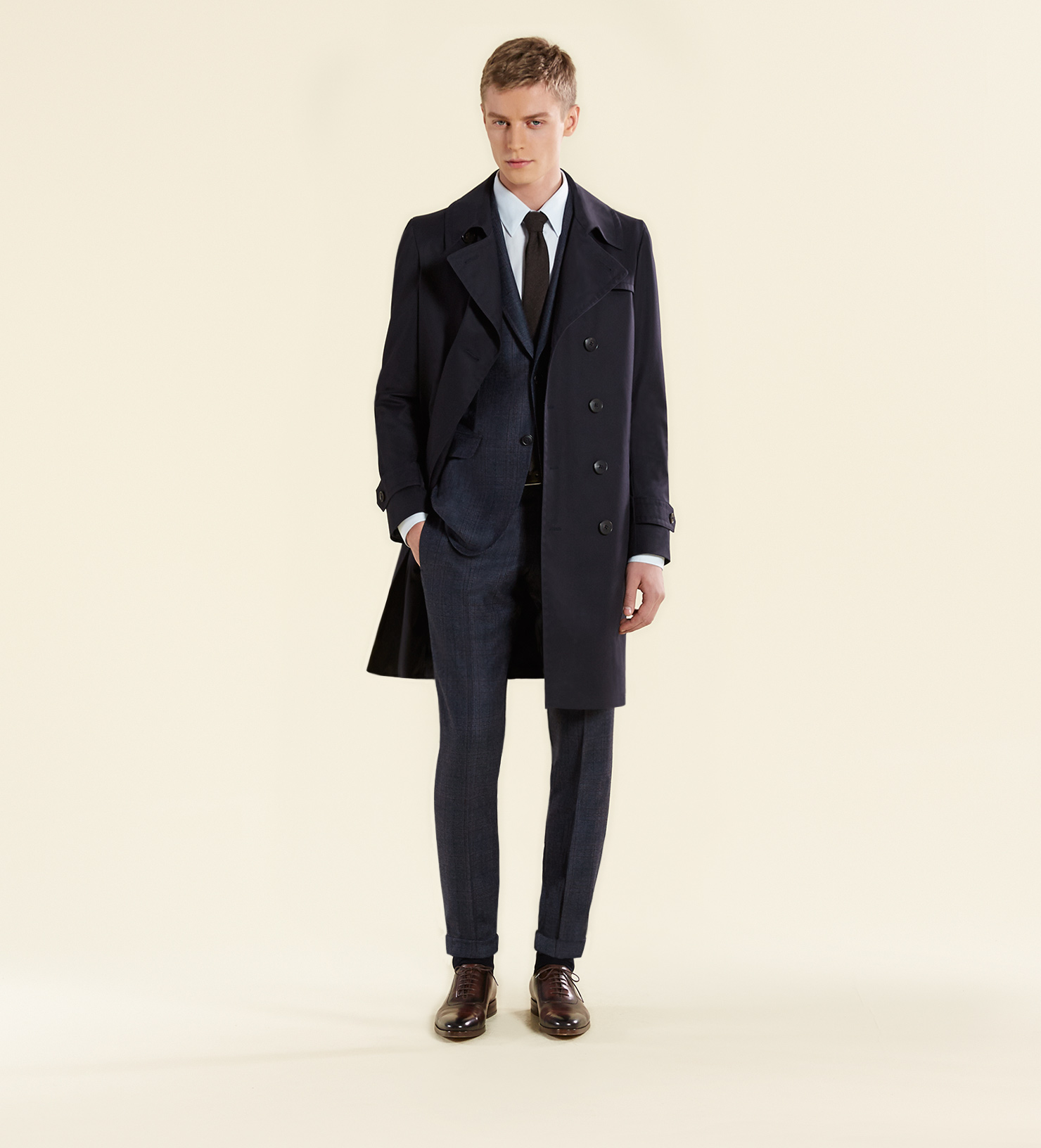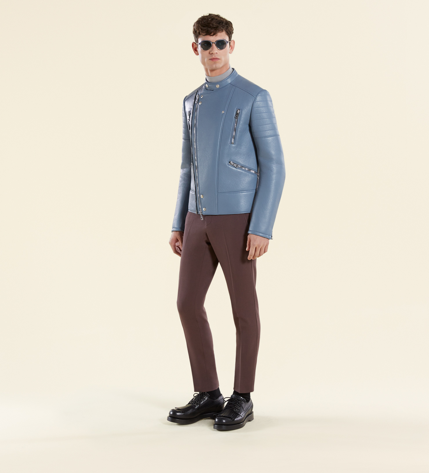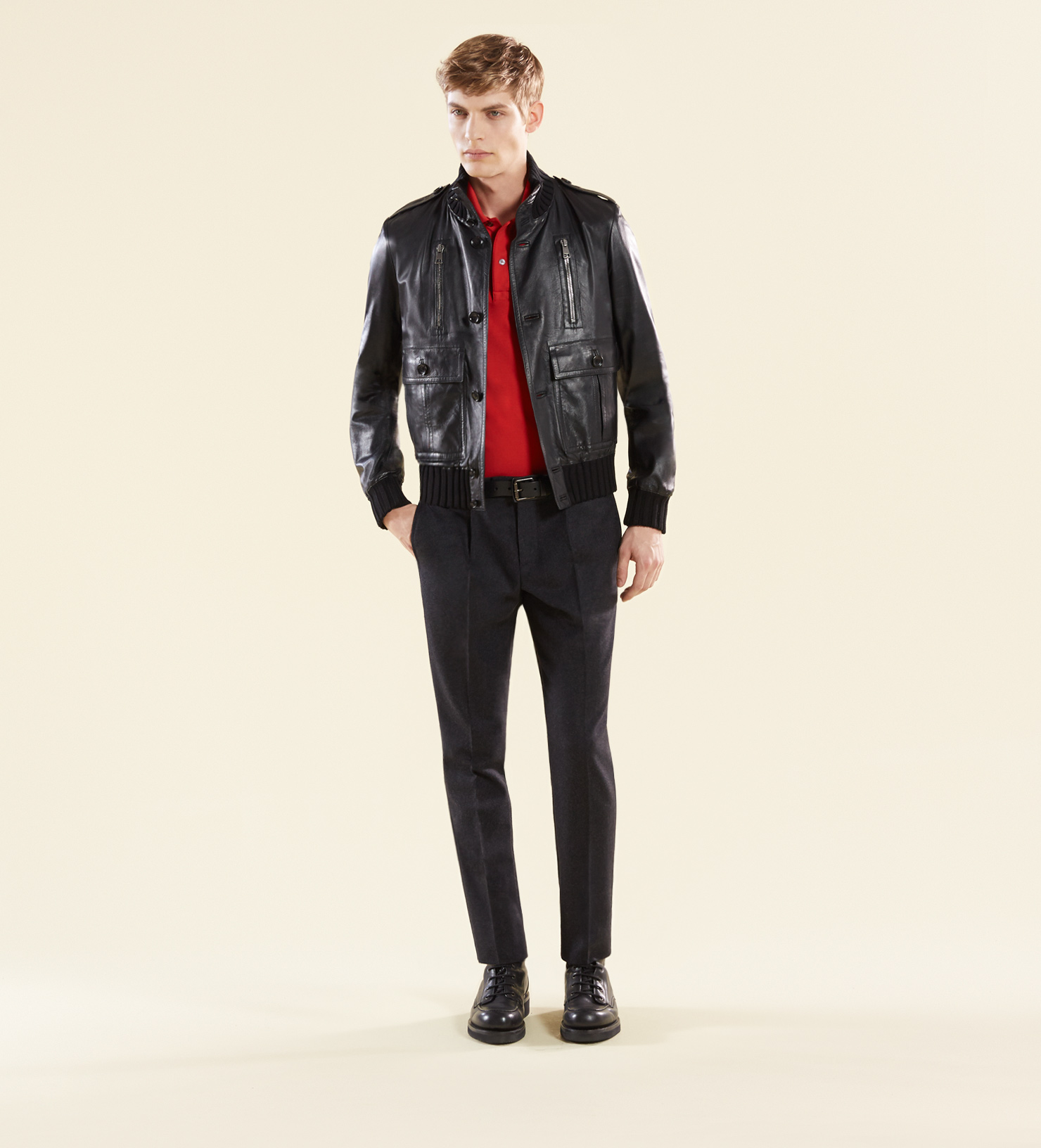London Calling-The starting point of Gucci’s fall/winter 2014 menswear collection by creative director Frida Giannini is the city of London in the 1960s. Heading on an imaginary journey that take place on the British streets during a historical moment of experimentation and cultural change, the Italian fashion house delivers a collection deeply influenced by the past, but translated into a present idea of dressing. Models Arthur Gosse, Baptiste Radufe and Janis Ancens are enlisted by the luxury label to appear in its fall lookbook, displaying the skinny silhouettes conceived for the upcoming fall season. Combining slim-fitted designs with highly tailored volumes and garments, Gucci’s emblematic key piece for the new season is the fisherman’s cap, while the label’s luxurious leather accessories get a new twist with the addition of new color variations. Black, creamy and almost dusty pastel tones define the sense of style for the season, adding new energy to the garments, designed using fine fabrics, like wool, leather and velvet, combined with performing and sportswear oriented materials, like neoprene.