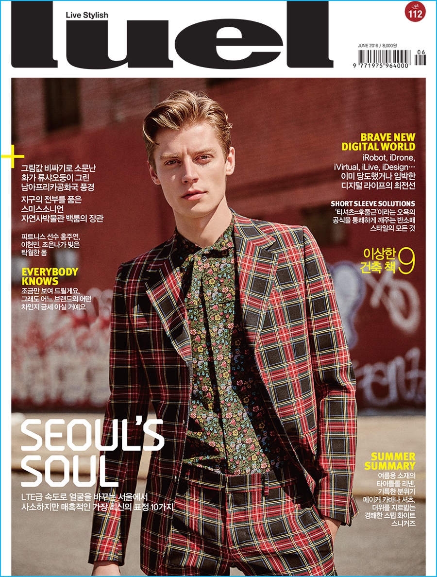 Luel magazine enlists model Janis Ancens to cover its June 2016 issue. A former face of Gucci, having starred in the brand’s pre-fall 2014 campaign, Janis is front and center in the label’s latest fashions. Photographed by Shin Sun Hye, Janis steps out in dandy looks from Gucci creative director Alessandro Michele’s pre-fall 2016 lineup. Styled by Min Byung, Janis charms as he wears patterned suiting, kitschy sweaters and cheeky sportswear.