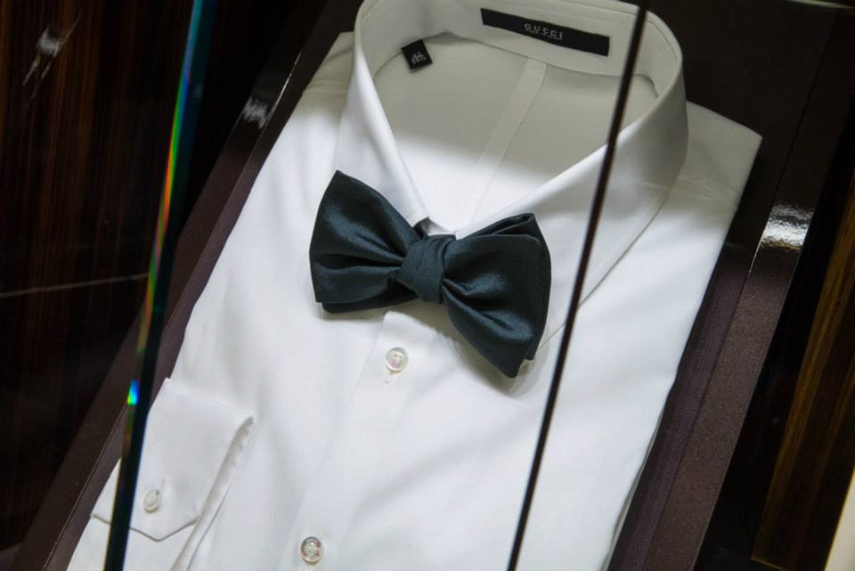 Suit & Tie–In the busy schedule of Milan Fashion Week, Italian luxury label Gucci finds some time to celebrate the opening of its new boutique in the city of Milan. The new flagship store, which is Gucci’s first European men’s only boutique, is in Milan’s Brera neighborhood, and develops on three levels, made of marble floors, glasses and precious woods, including an exclusive Made to Measure salon and a shoeshine corner, as well as Gucci’s ready-to-wear menswear collections and luxury accessories.