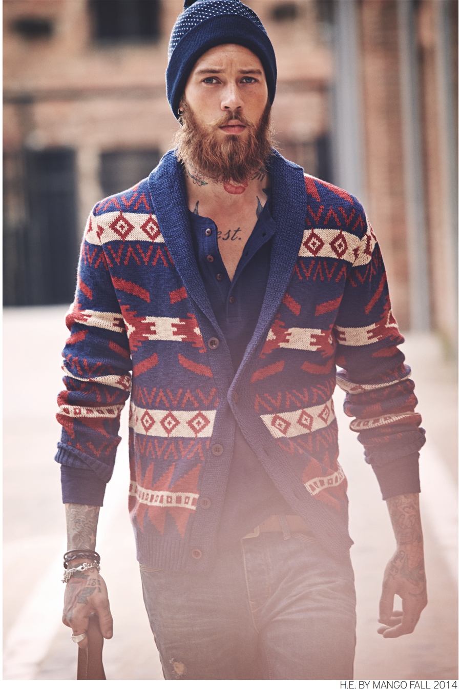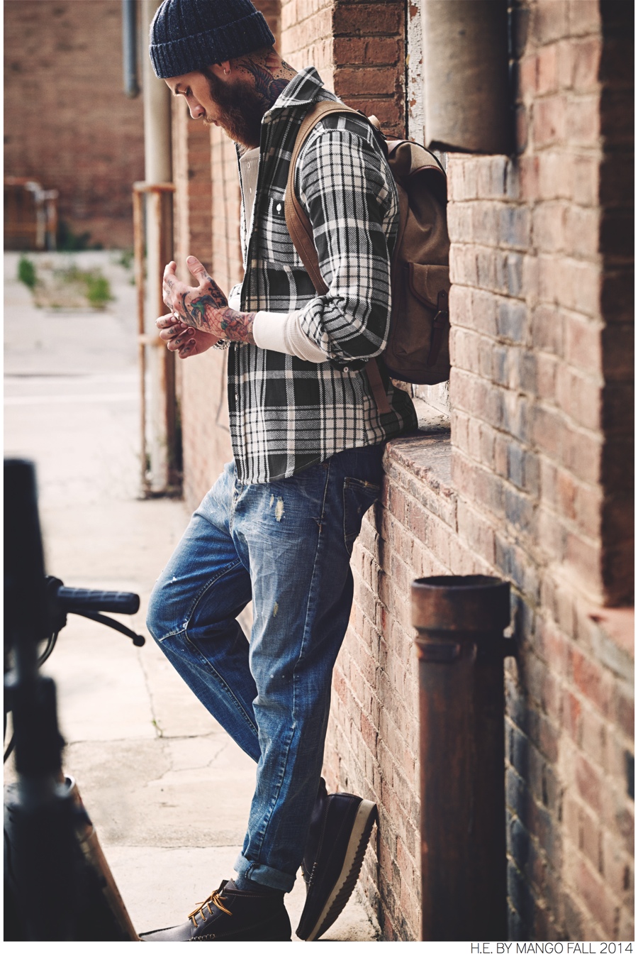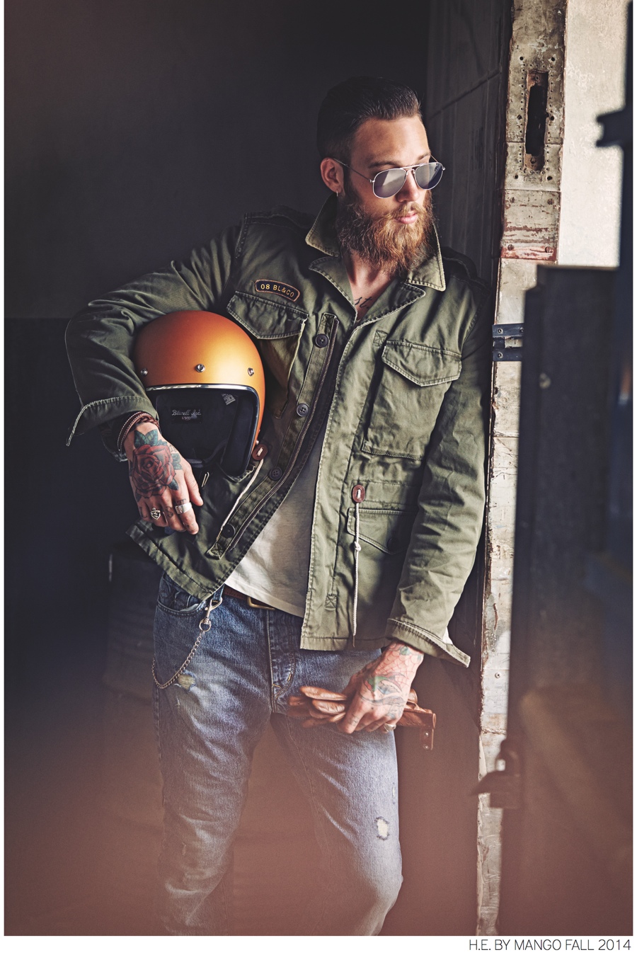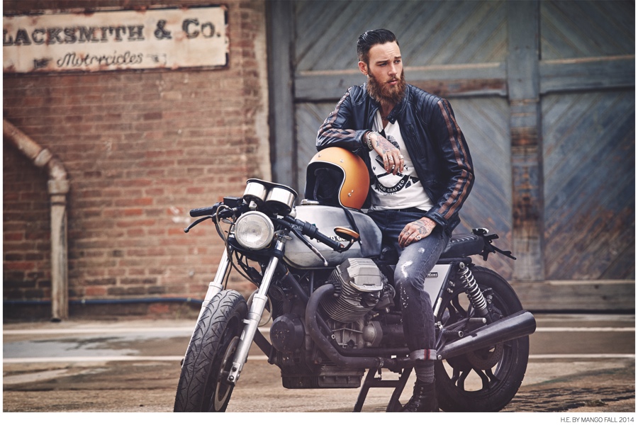 Young & Fresh-Following up the smart, sophisticated styles that make up its fall 2014 mainline collection, H.E. by Mango presents a look at its new ‘Blacksmith’ range. The collection rounds up casual essentials with a young attitude. Fused with a rustic nostalgia, distressed denim, woven t-shirts, military jackets, printed knitwear and more contribute to a contemporary outing with highly wearable fashions.