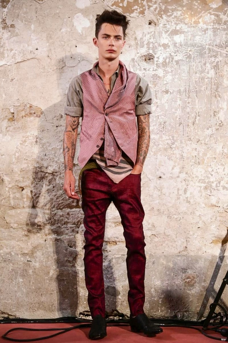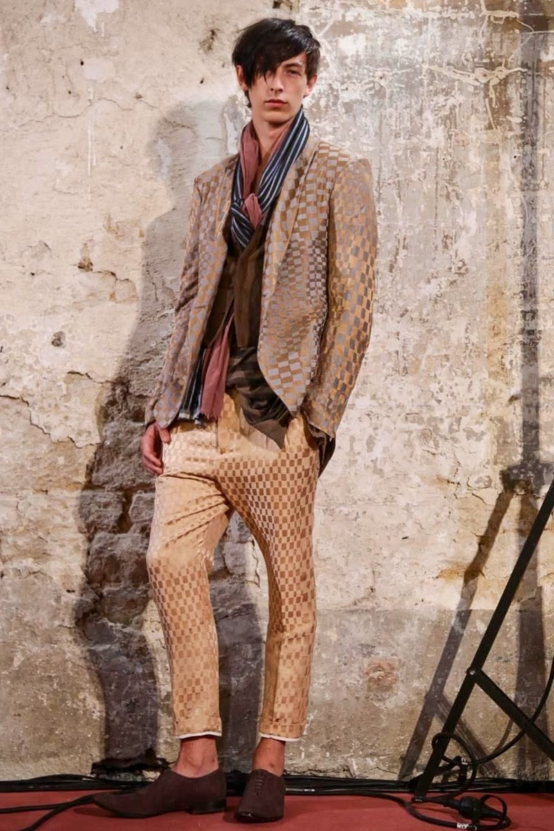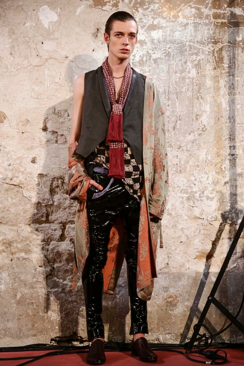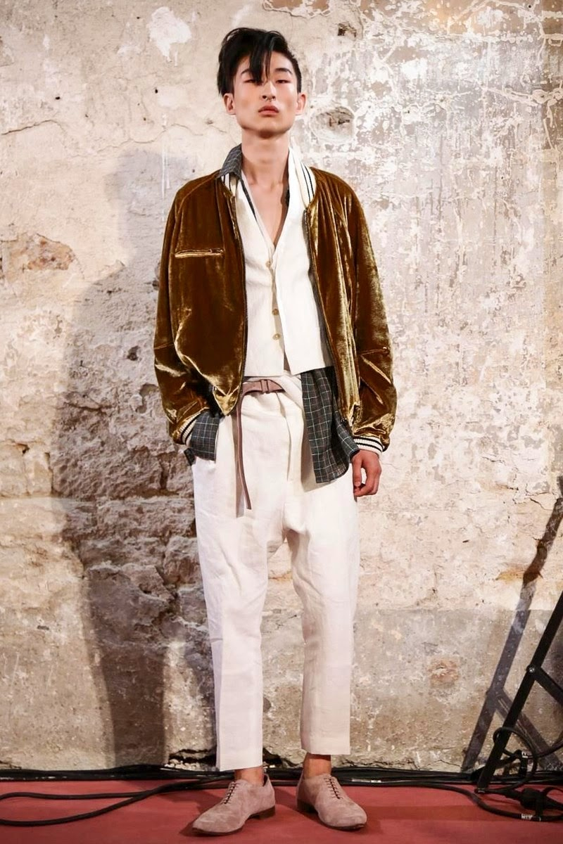 Haider Ackermann Spring/Summer 2015–Presenting his spring/summer 2015 collection during the first day of Paris Fashion Week, Haider Ackermann unveiled a lineup rich in luxe layers, intricate patterns and draped silhouettes. Offset against skin tight leather jeans, the first look revealed a slouchy black and white striped tee, paired with a short burgundy silk jacket. The way in which the colors played off of each felt so natural that it captured the perfect sentiments of Ackermann’s man. Exuding an organic feel, separates come together with such ease that they mirror the comforts of a wardrobe filled with worn-in favorites. From silk scarves and printed shawl collar waistcoats to velvet jackets worn with slim cropped trousers, Ackermann’s world is a sartorial dream that just feels right–it’s somehow the perfect fit.