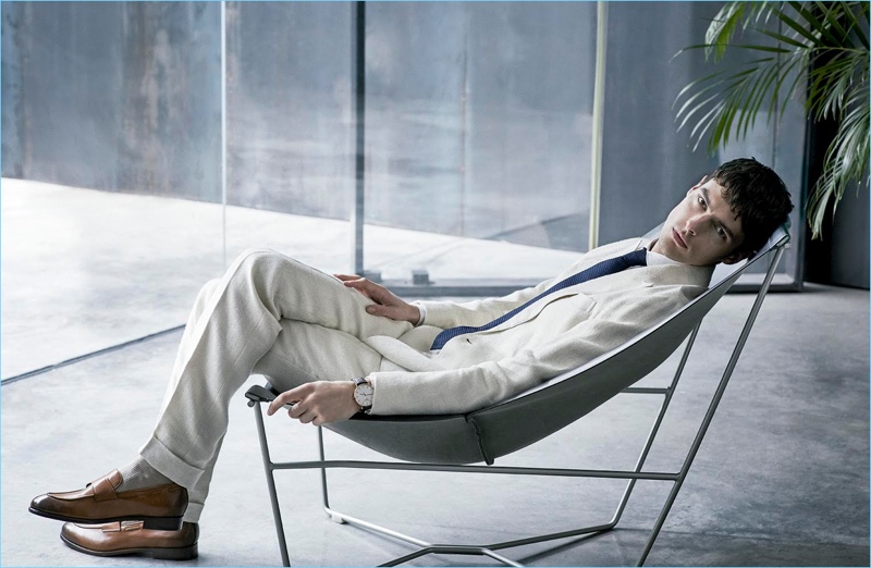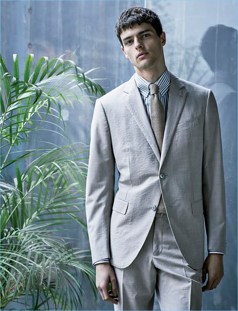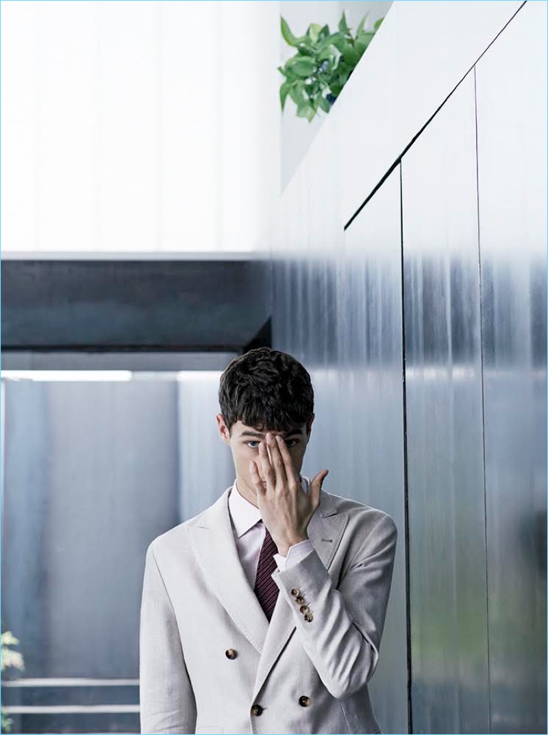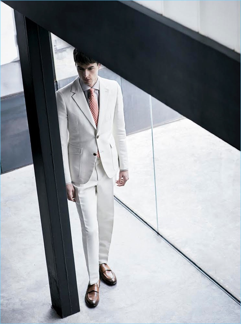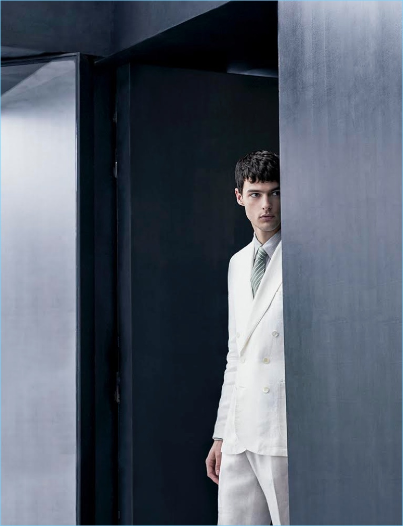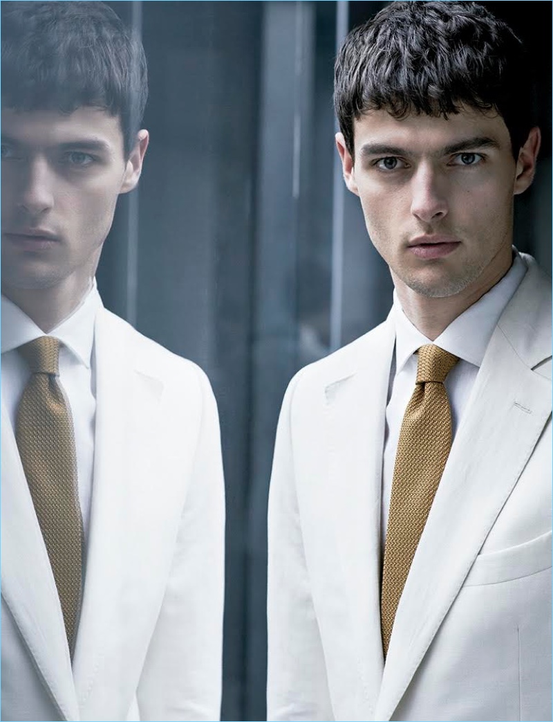 Photographer Sergi Pons returns to the pages of Código Único with a story featuring model Hannes Gobeyn. Looking to the spring season for inspiration, stylist Jesús Cicero approaches suiting with a neutral state of mind. Putting a sleek foot forth, Hannes strikes up a sartorial spirit with designer suits. Wearing grey, off-white, and other neutrals, Hannes showcases suiting from brands such as BOSS Hugo Boss and Canali. / Grooming by Marina Alejandre.