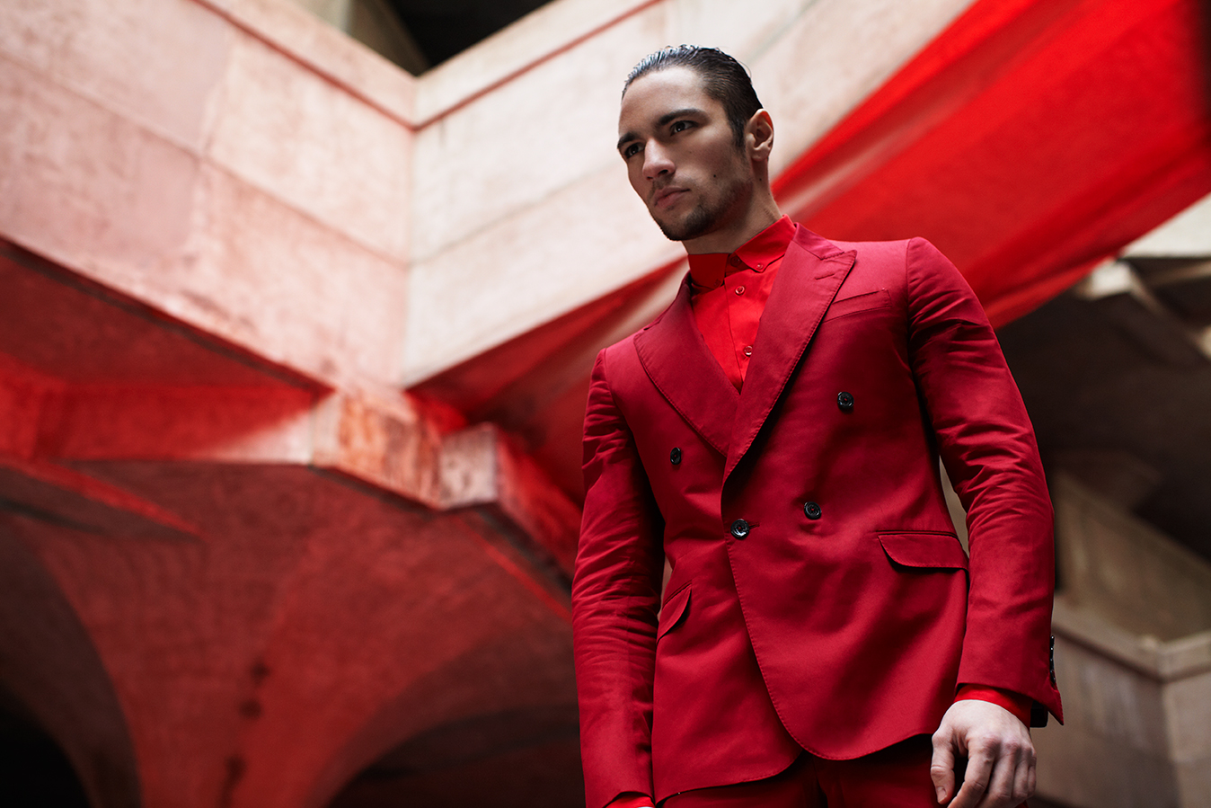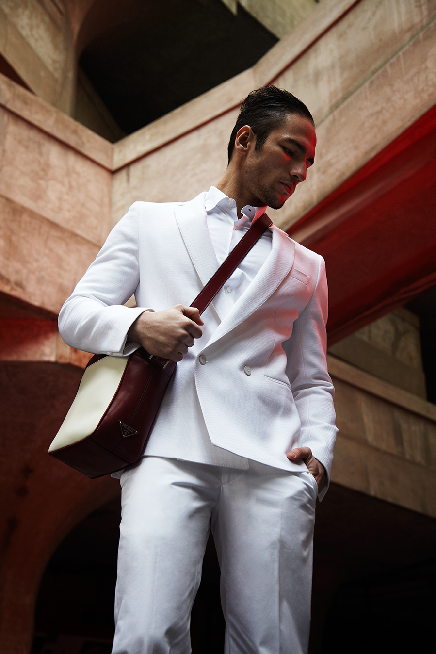 Red & White–The starting point of this stunning editorial shot by Hans Neumann for Harper’s Bazaar Men China, is how we confer different meanings to the colors. Heading to the modern city of Shanghai, Neumann joins creative forces with stylist Gautier to portray model Parco in a wardrobe that plays with two different and opposite concepts: passion, embodied by the color red, and pureness, symbolized by white. Moving in a setting made of modern architecture in cement and iron, Parco dons a wearable and desirable wardrobe where red designs unveil his strong and confident personality, while the impeccable white numbers he’s wearing highlight his more intimate and meditative facet.