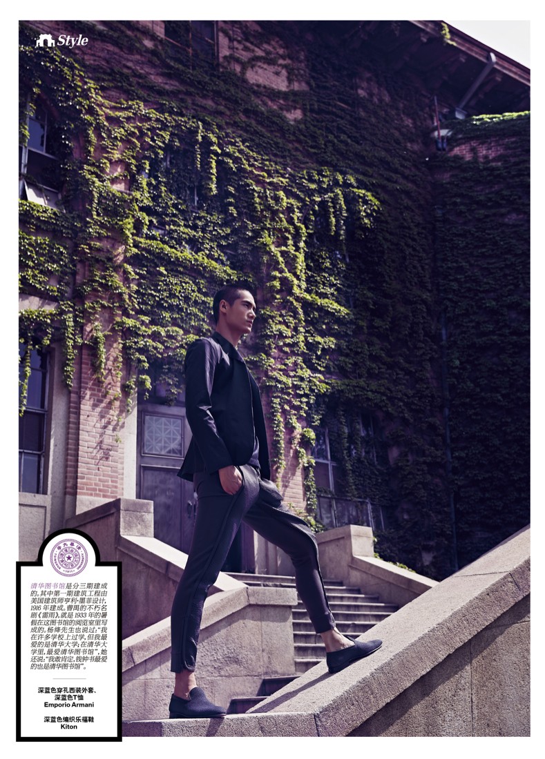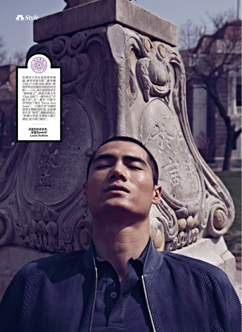 Nostalgic in Tsinghua–Fresh after attending Balenciaga’s Beijing show, model Hao Yun Xiang graces the pages of Esquire China’s May issue with a story photographed by Haiyong Wu. Featuring styling by fashion editor Will Wu, Hao poses for nonchalant images in relaxed tailoring from labels such as Louis Vuitton and Emporio Armani. / Makeup by Xinyuan Li. Hair by Xiao Zhang.
