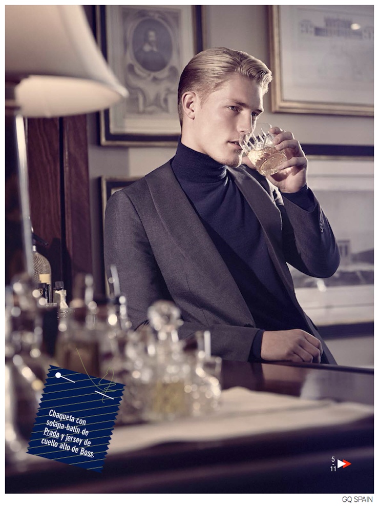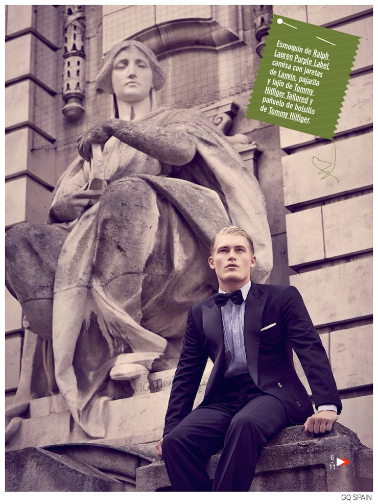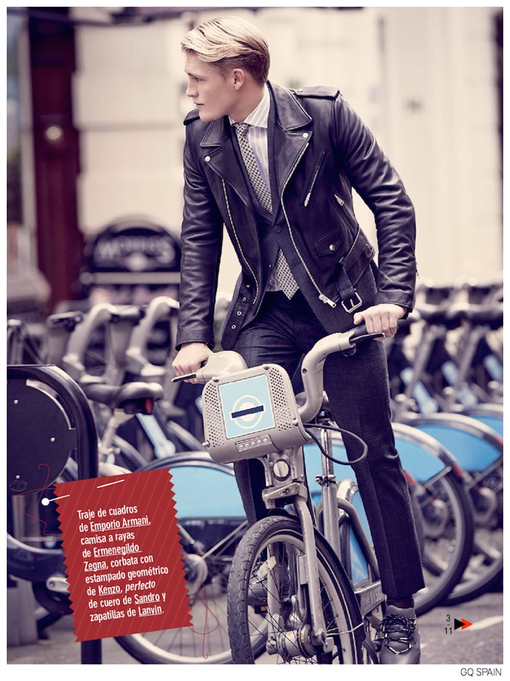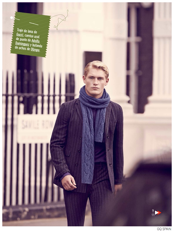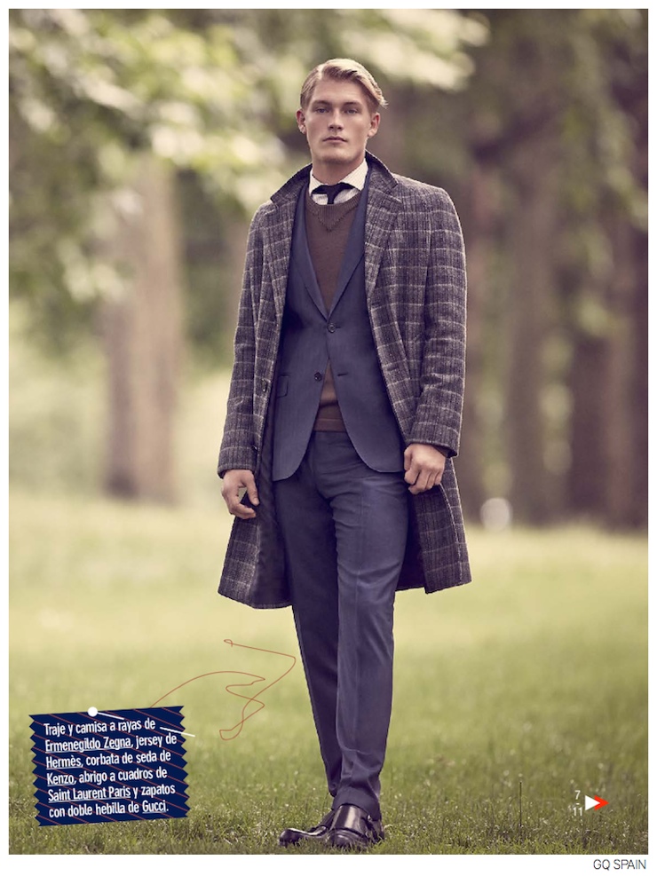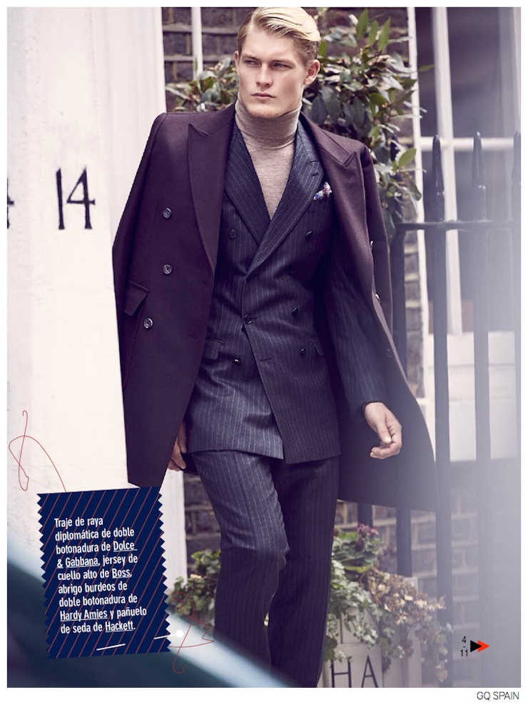 Past & Present-Gracing the pages of GQ España’s September 2014 issue, model Harry Goodwins takes on sartorial styles for this story lensed by photographer Diego Merino. Paying homage to the British sartorial tradition, the blond model is styled by Jesús Cicero in looks from the fall collections of Dolce & Gabbana, Ermenegildo Zegna, Burberry Prorsum and more. This refined style is amplified by Harry’s impeccable hairstyle and dandyish accessories, like printed silk squared and bow ties, or a stylish umbrella, which is an essential when faced with London’s rainy weather. / Grooming by Keiichiro Hirano.