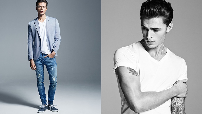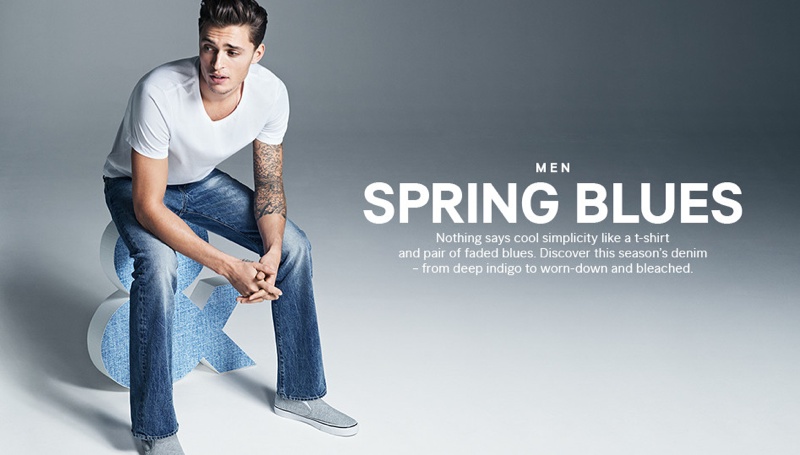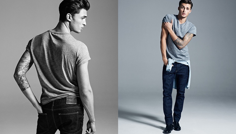 Spring Blues–H&M taps British model Harvey Haydon for a timely style update. Featuring spring blues in the form of the Swedish retailer’s latest denim offering, the shoot showcases Harvey in casual ensembles. From distressed denim jeans to the timeless denim jacket, Harvey impresses with an effortless accessible point of style.