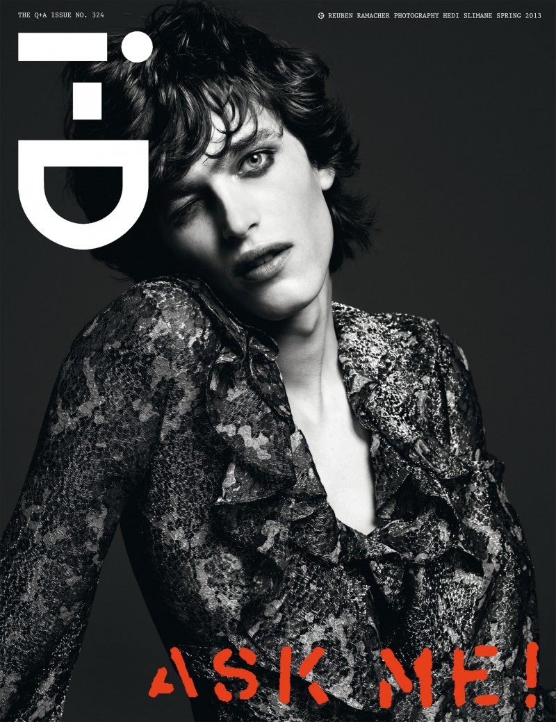 Retro i-D–Reuben Ramacher (Ford Europe) embraces his androgynous side for i-D’s spring/summer 2013 edition. Sarah Richardson styles Reuben in the vein of rock star royalty like David Bowie and Mick Jagger for the predominantly black-and-white shoot. Acclaimed photographer Hedi Slimane captures the brooding images of the up-and-coming Australian model in Los Angeles for the British style bible.