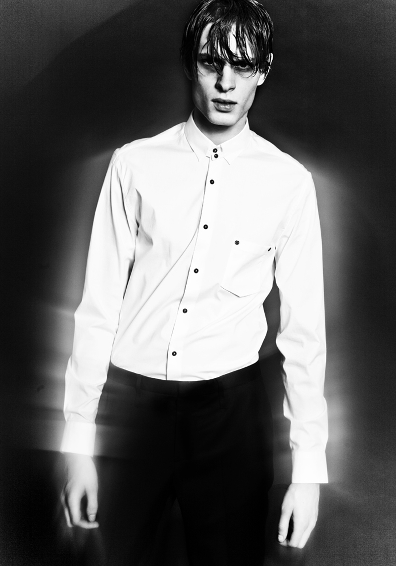 Dark Spirits–Swedish brand Fifth Avenue Shoe Repair adopts a grunge mentality for their fall/winter 2013 campaign, photographed by Jasmin Storch. Complementing a dark attitude with a heavy stare, model Hektor Wedin evokes an unsettling calm in the monochromatic and deconstructed designs of the label, pulled together and styled by the designers themselves, Astrid Olsson and Lee Cotter. / Grooming by Asa Elgrem.