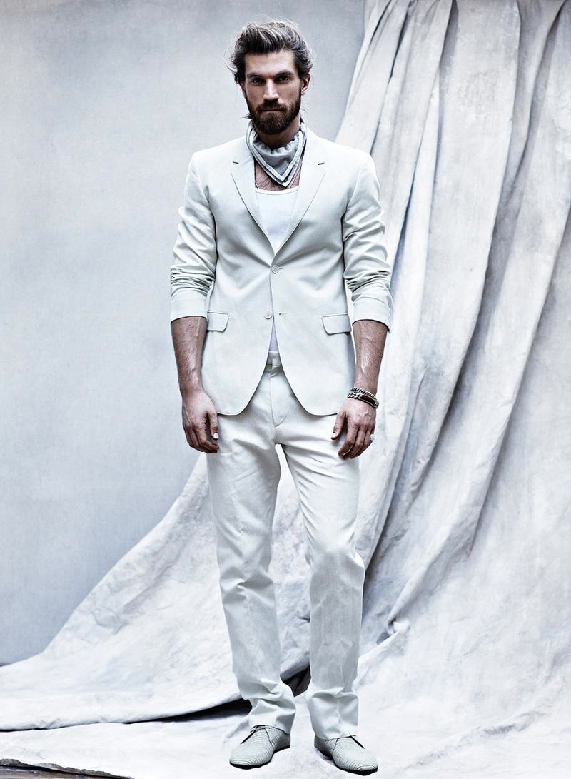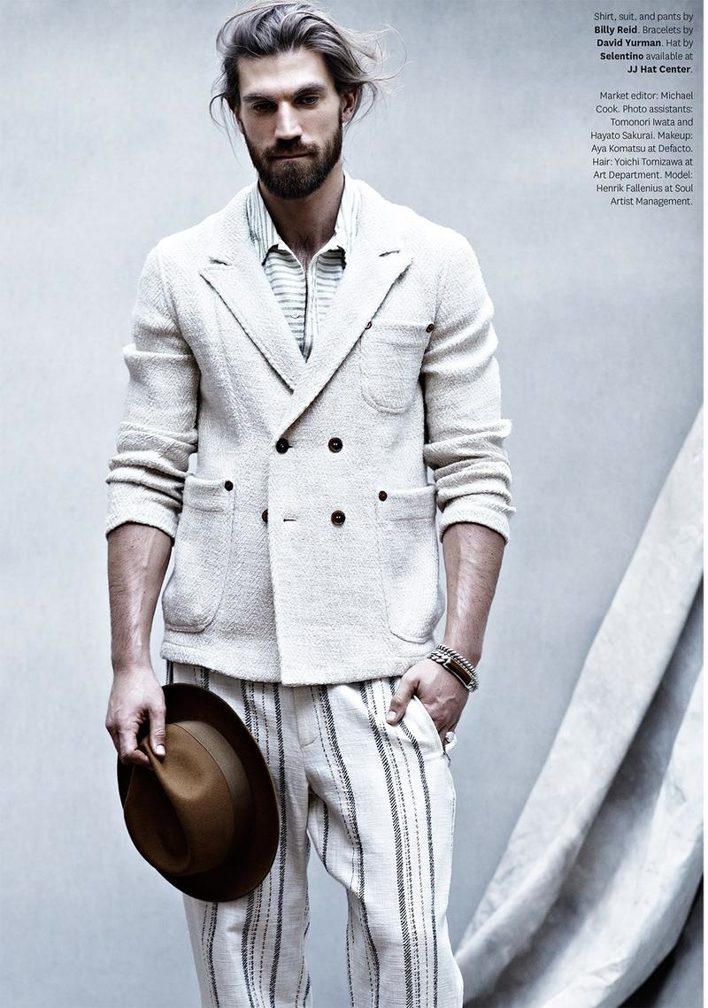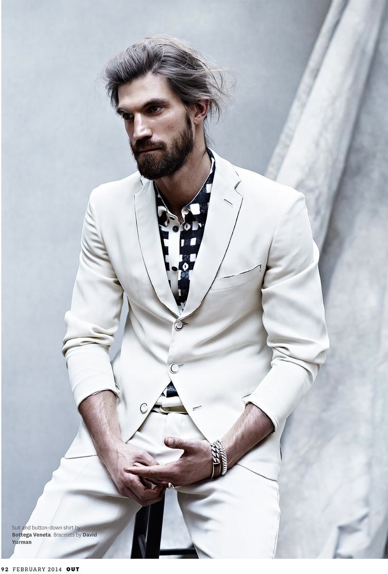 Fade to Gray–Hitting the photo studio with photographer Tetsu Kubota, model Henrik Fallenius is featured in an editorial for the February issue of Out magazine. Wearing grays, whites and more, Henrik is a tailored vision as styled by Grant Woolhead. From the soft artful designs of Bottega Veneta creative director Tomas Maier to the modern intrigue of Z Zegna, Henrik is dressed to impressed in lightweight suiting in cool hues.