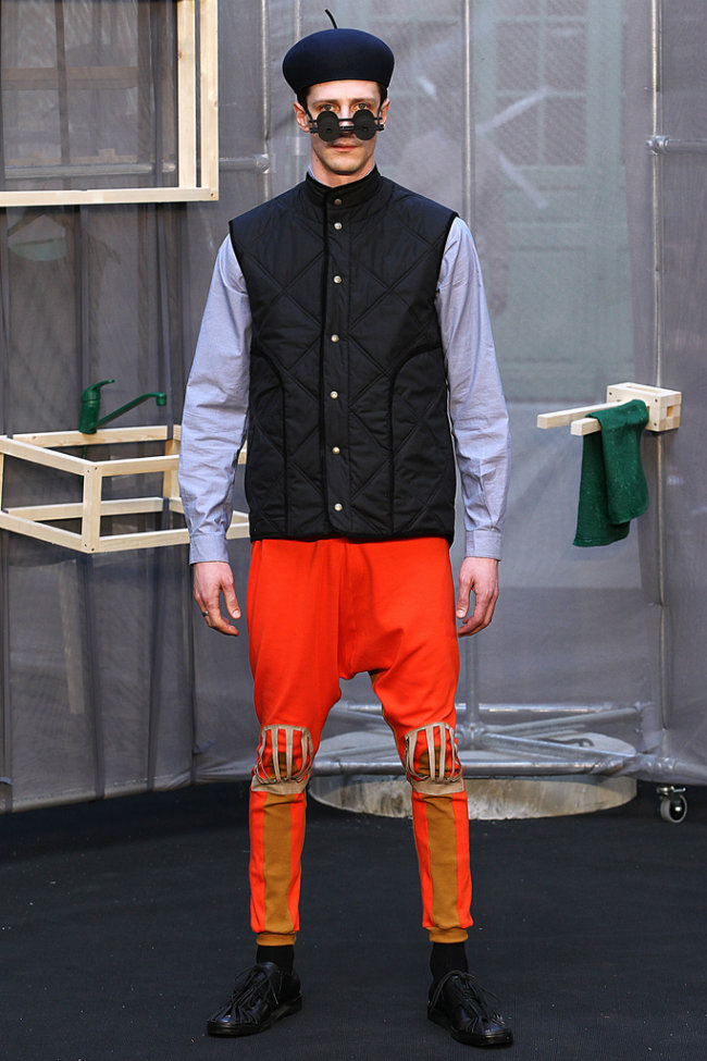 The Wild One–A master of innovative designs that have people talking, Henrik Vibskov continued to stir up drama with conversational pieces for spring 2012. Plentiful in eccentricity and personality, the Scandinavian designer enticed with a mix of playful prints and offbeat colorways with heavy knits as well as quirky accessories for an unusual spring outing. Experimenting with silhouettes and proportions once more, tailored jackets featured exaggerated shoulders while baggy trousers were loosely strung.