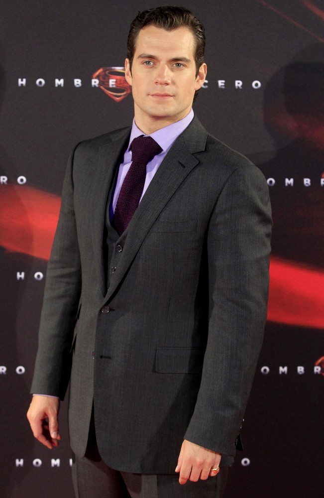 Cavill in Ralph Lauren-Touching down in Madrid for the Spanish premiere of the latest Superman film adaptation Man of Steel, actor Henry Cavill wears a look from Ralph Lauren. Lightening up a three-piece charcoal suit with a splash of purple, Cavill completed his look with a knit tie.