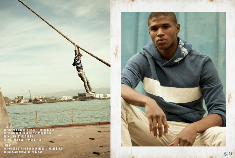 Commercial Appeal–Henry Watkins (Red) and Jae Yoo (Soul) appear in American Eagle’s spring 2011 catalogue. Spending a casual day at sea, the models put their best foot forward for commercial success.