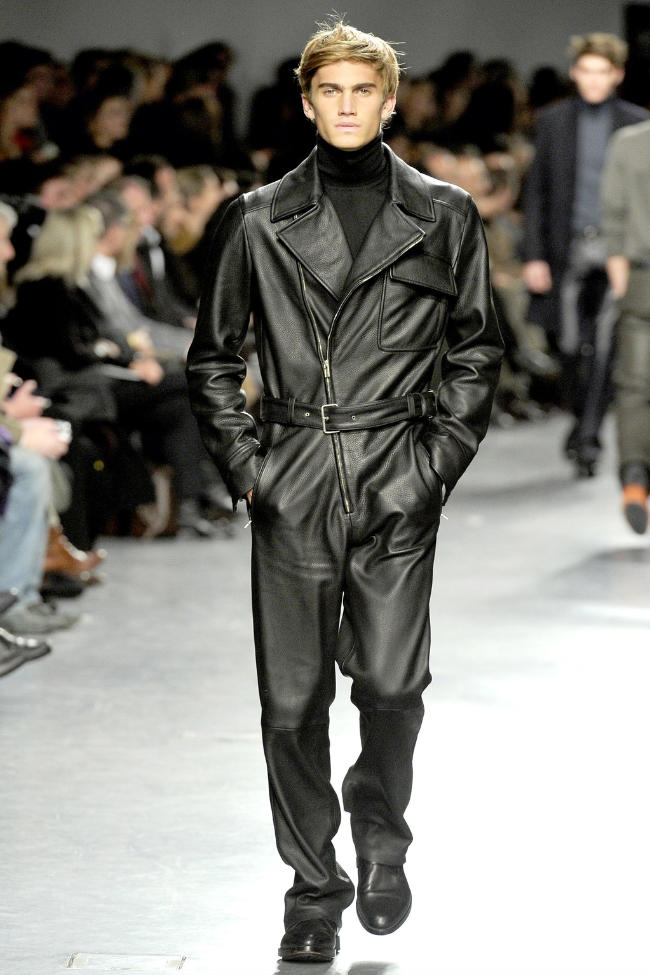 Hermés’ man bulked up for the fall season with a wardrobe modeled after the working man. The collection’s protagonist may be prone to getting his hands dirty, but the French house upheld their signature stamp on luxury. Mixing and matching the likes of double breasted blazers with leather ensembles, the key statement piece sent out by Véronique Nichanian came forth in a distinctive jumpsuit. Continuing a season’s focus on volume, the bulky silhouette fit right in with relaxed trousers and a hint of oversized outerwear for a cohesive showing.
