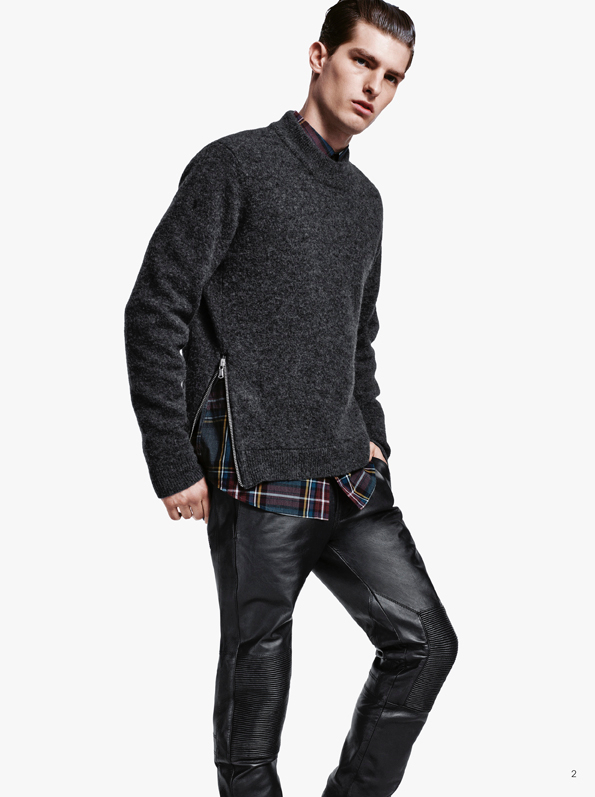 H&M Fall 2014–Hot on the heels of its fall 2014 video, H&M unveils the corresponding lookbook featuring model Paolo Anchisi. Showcasing a dark wardrobe inspired by a European cool, the collection boasts key items such as leather jackets and pants, paired with plaid flannel shirts. These youthful pieces are accompanied by timeless essentials that include crewneck sweaters, an elongated pilot jacket and three-button blazer. Hitting brick and mortar stores as well as online at HM.com this September, the collection is the perfect transition into autumn with pieces that are easily transformative.