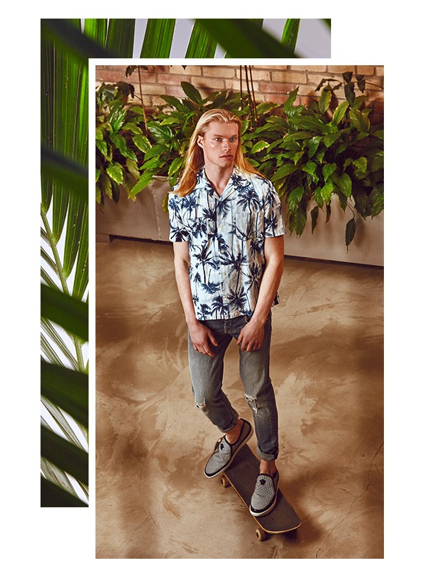 Holt Renfrew hangs loose with a new fashion shoot lensed by photographer D.Picard. Tackling surf-inspired style, Elmer Olsen models Carlton and Solomon stir up envy. Wearing a wardrobe with bold prints and comfortable silhouettes, the models survey the spring-summer 2016 designer collections. Highlights include Saint Laurent knitwear, Prada denim jeans, Givenchy sneakers and more.