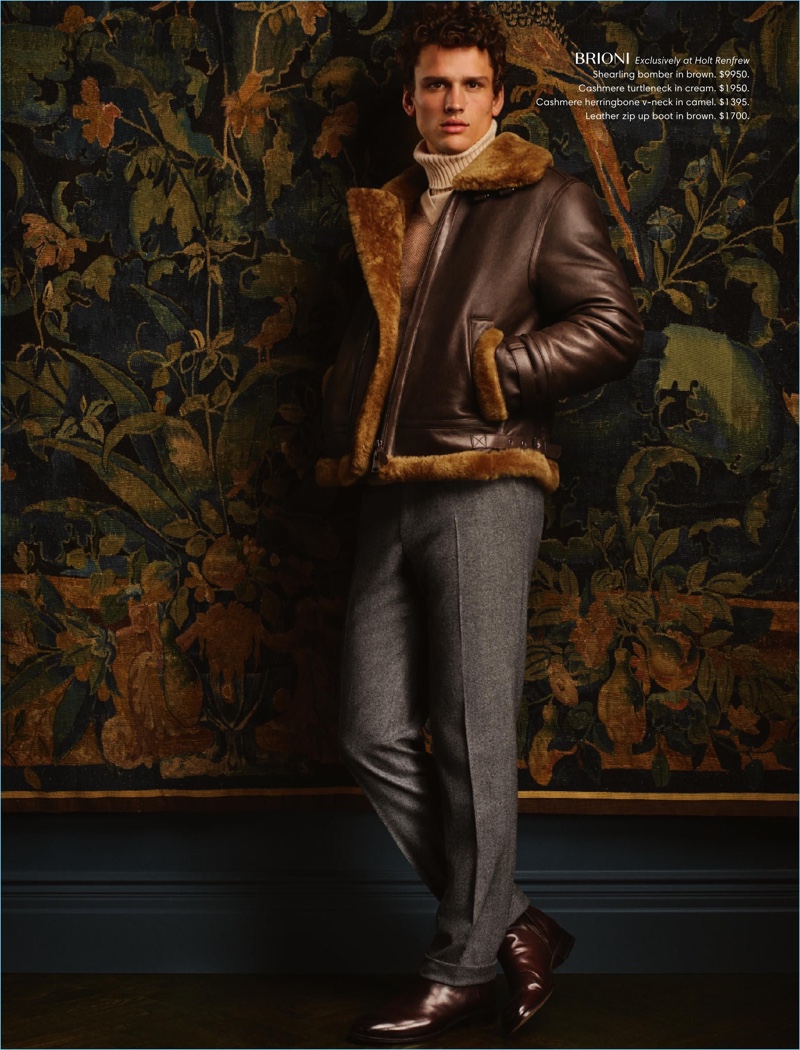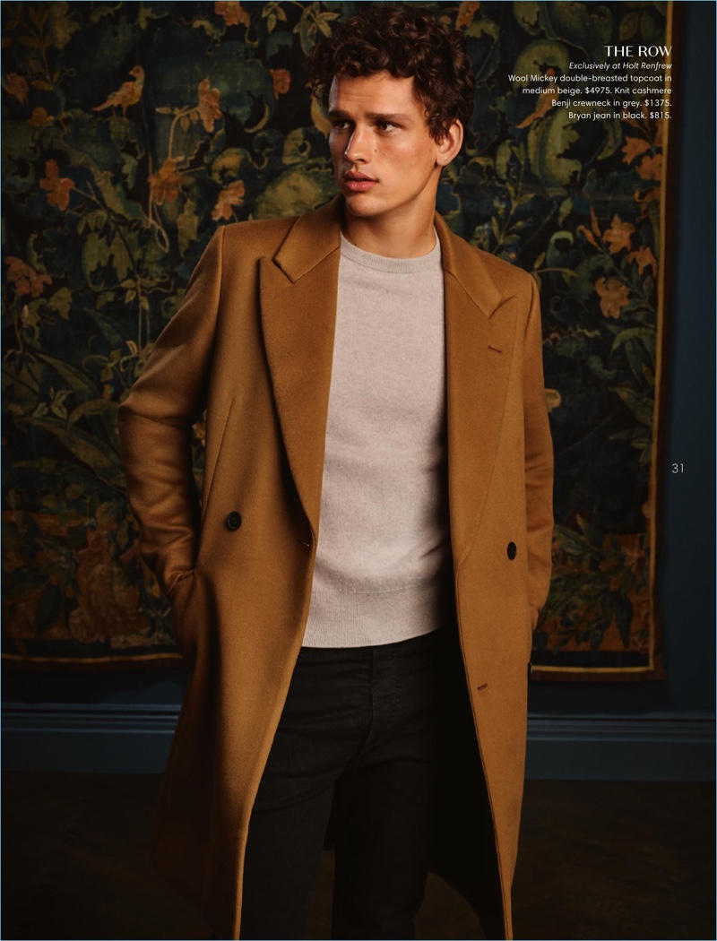 Holt Renfrew continues to deliver on a luxurious fall-winter 2018. The face of its current campaign, model Simon Nessman also appears in a story featuring covetable looks for the season. Monochromatic dressing proves to be on-trend with several chic ensembles. Simon sports sleek tailoring in the form of coats, suits, and elegant separates. His wardrobe includes brands such as Canali, BOSS, and Brioni.