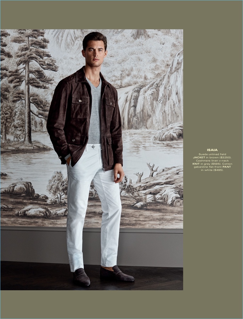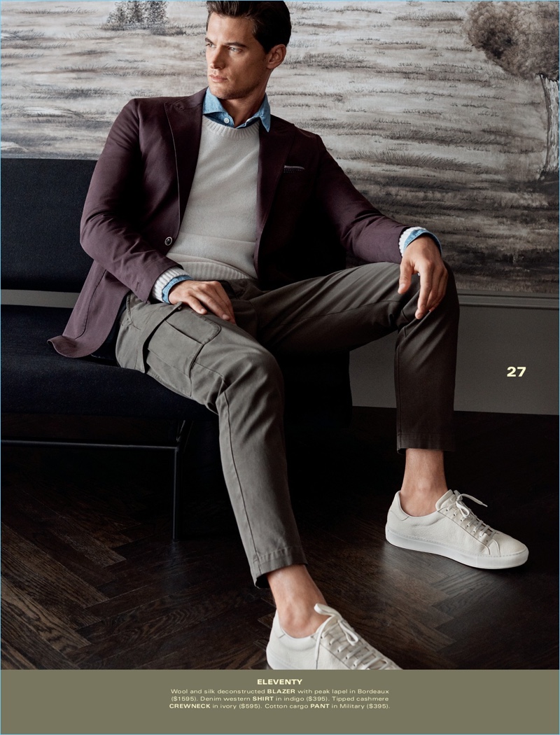 Holt Renfrew unveils its spring 2018 men’s catalog. The outing features none other than Garrett Neff. Front and center, Garrett embraces shades of pink from Tom Ford for the striking cover. Inside the catalog, Garrett showcases Holt Renfrew’s best designer offering for spring. The American model sports a variety of looks that take him from casual to formal and refined. Garrett dons a desirable wardrobe that includes brands like Saint Laurent, Moncler Gamme Bleu, and Tom Ford.