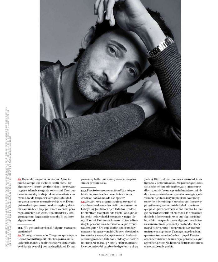 Brody is Magical–Starring in Houdini, actor Adrien Brody continues to make the promotional rounds after covering Manhattan magazine. Gracing the cover of the spring/summer 2014 issue of Esquire – The Big Black Book Mexico, Brody is photographed by Marcus Ziegler. Always known for his impeccable fashion sense, the magazine suits his style nicely as the actor dons sharp ensembles from labels that include Calvin Klein Collection and Tom Ford.