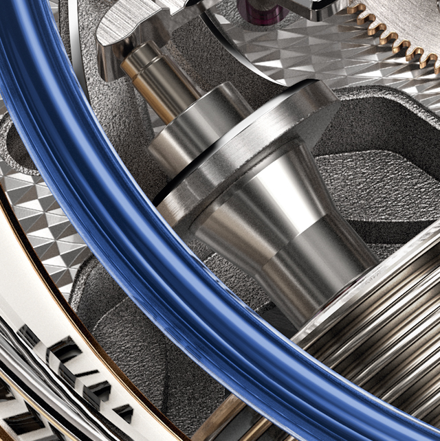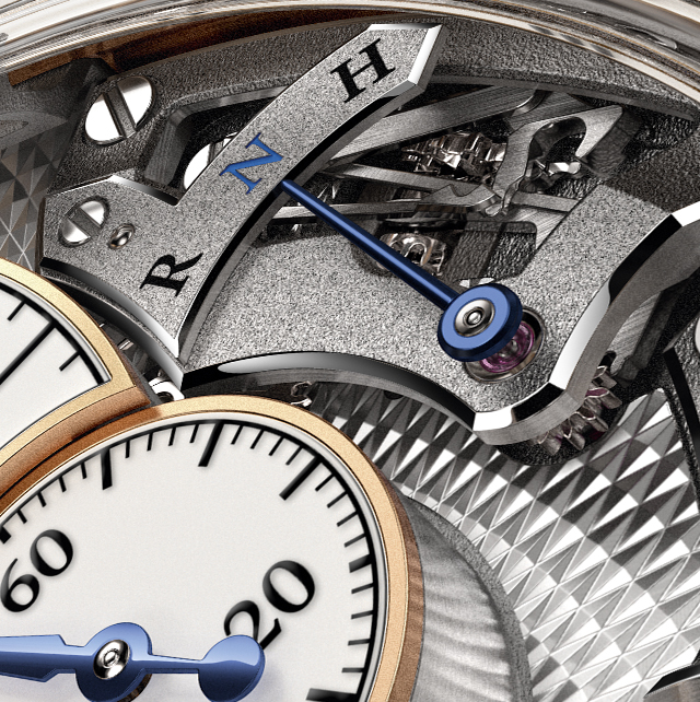 HYT worked with one of its regular partners APRP to accomplish the feat. Redesigning the case of the H2 Tradition, the crown protector was removed to celebrate traditional watchmaking. The H2 Tradition’s beautiful diamond guilloché finish was also taken into account when designing the watch. Accommodating for the main plate’s side finishes in rhodium-plated nickel silver, the bridges of the watch were modified and hand-bevelled after being reconstructed and polished.